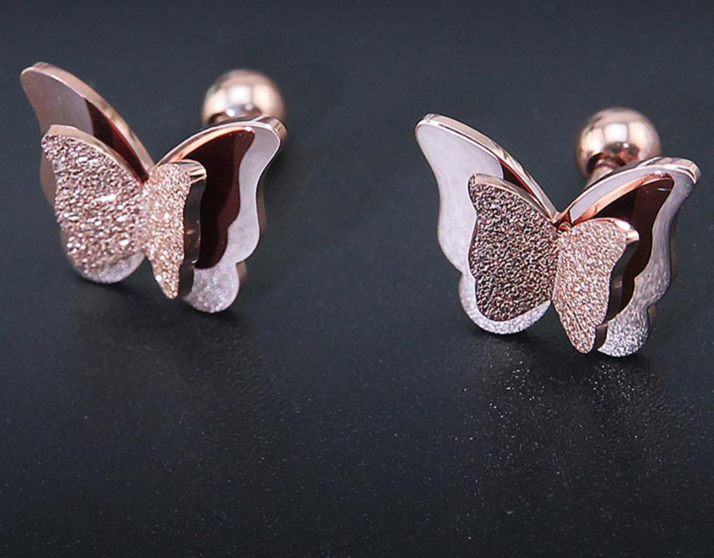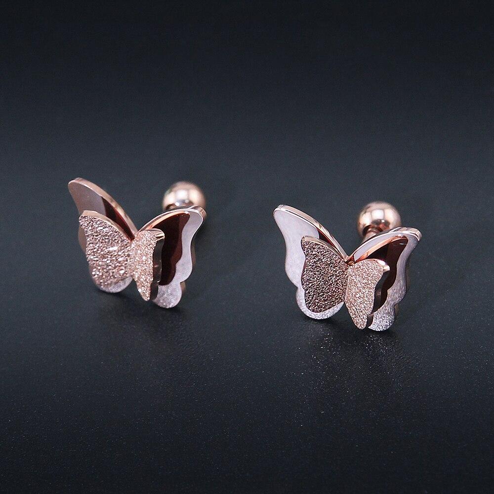 New Butterfly Earrings Rose Gold Color Stainless Steel Stud Earrings for Women butterfly earings