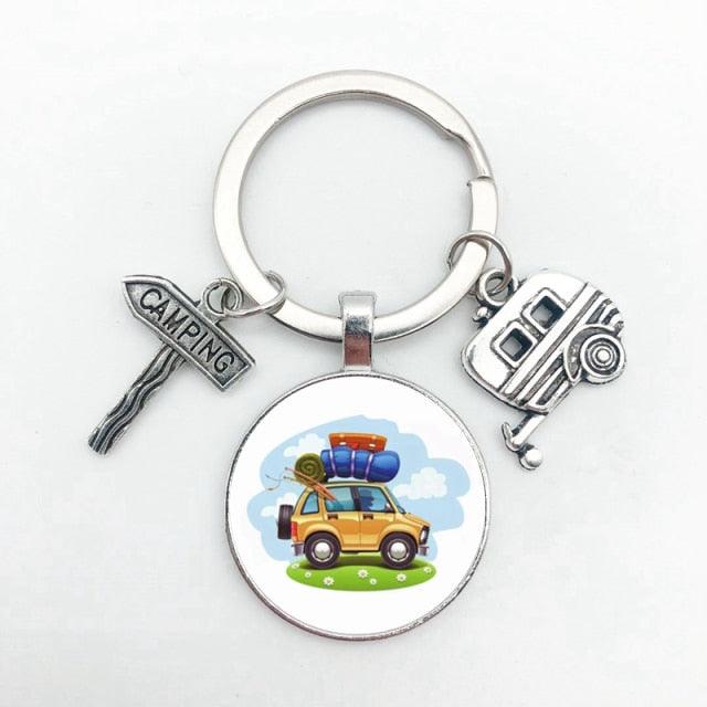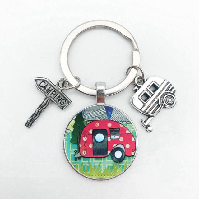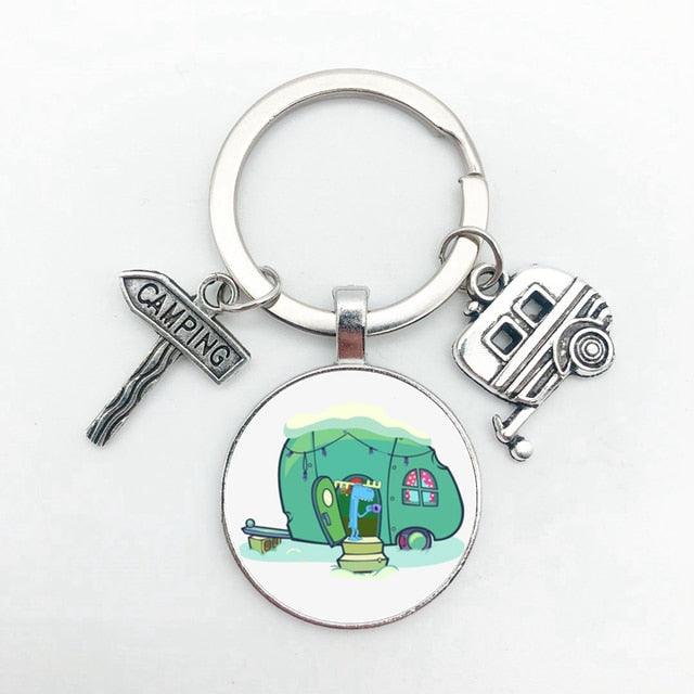 New Cute Camper Wagon Camper Gift Keyring Trailer Jewelry Trailer Keychain Adventure Awaits Trailer Key Chain Forest Scene Camping Voyage Keychains I Love Camping Keychain Trailer Keychain Vacation Travel Memorial Gift