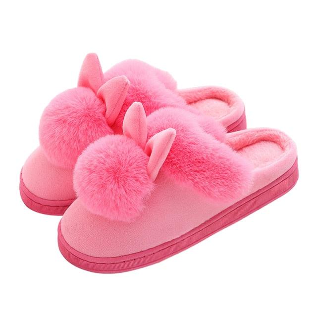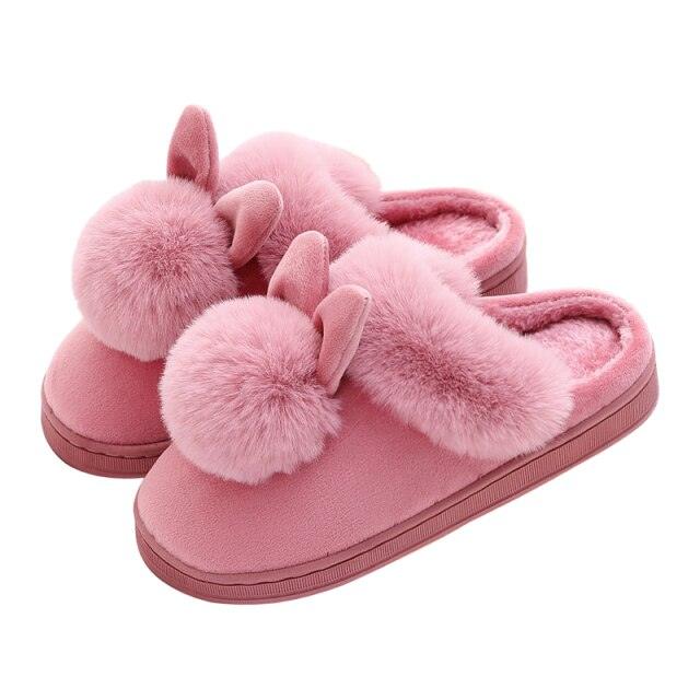 Comfortable Fashion Autumn Winter Cotton Slippers Rabbit Ear Home Indoor Slippers Winter Warm Shoes Womens Cute Plush Slippers Warm Indoor Slippers For Women Fleece Plush Bedroom Winter Boots