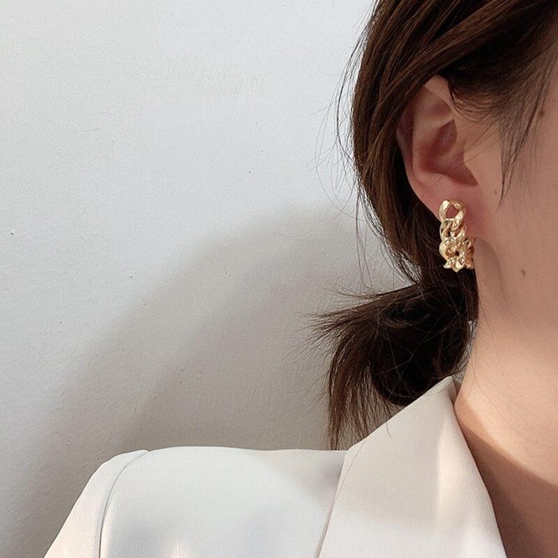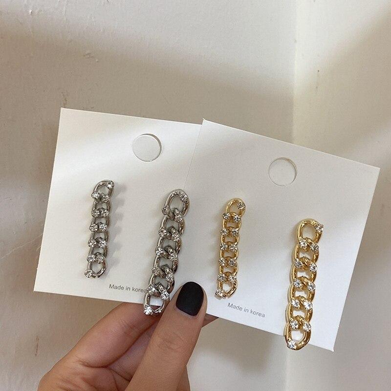 New Modern Fashion Metal Chain Rhombus Geometric Drop Earrings For Women Vintage Shiny Zircon Style