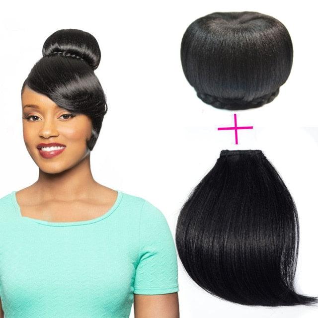 New Fashion Synthetic Fake Hair Bun And Bang Heat Resistant Braided Chignon Hair Piece Donut Ponytail Wig For Women Clip in Hair Extension For Volumized Hair Buns For Girls