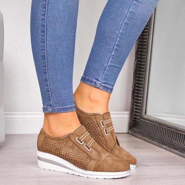 New High Heel Casual Womens Sneakers Breathable Height Increasing Shoes Air Cushion Comfortable Sneakers Women's Vulcanize Leather Shoes Luxury Walking Women Outdoor Shoes