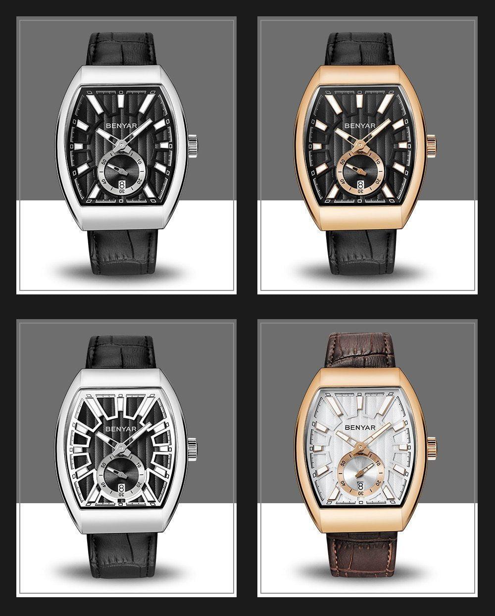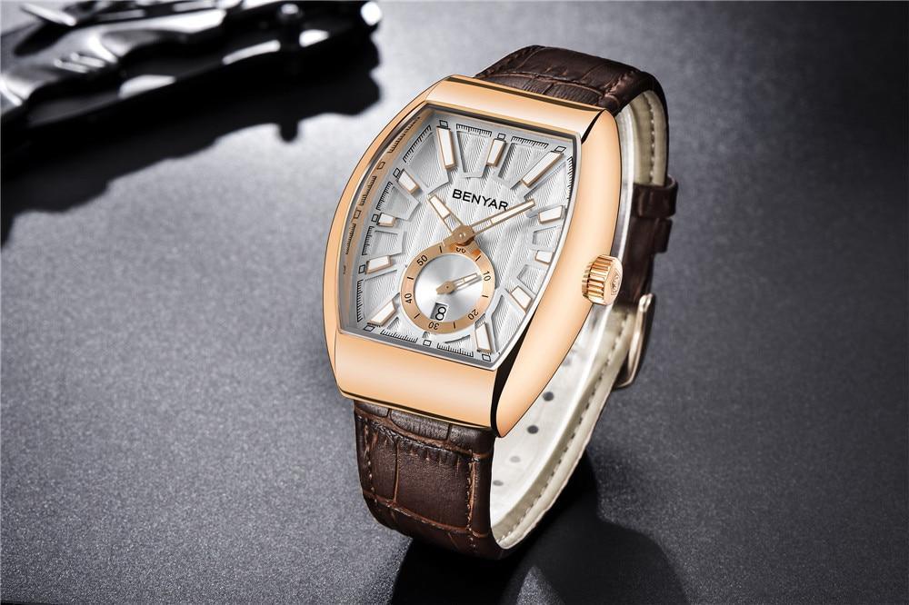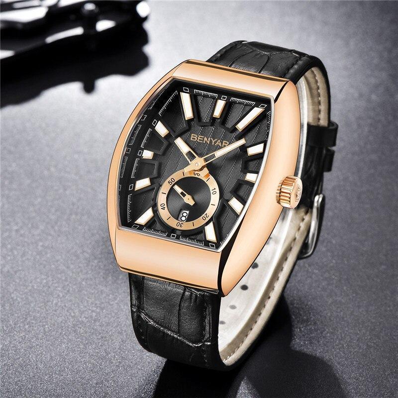 New Quartz Business Mens Luxury Watch Classic Retro Rectangle Analog Waterproof Fashion Leather Strap Wrist Watch