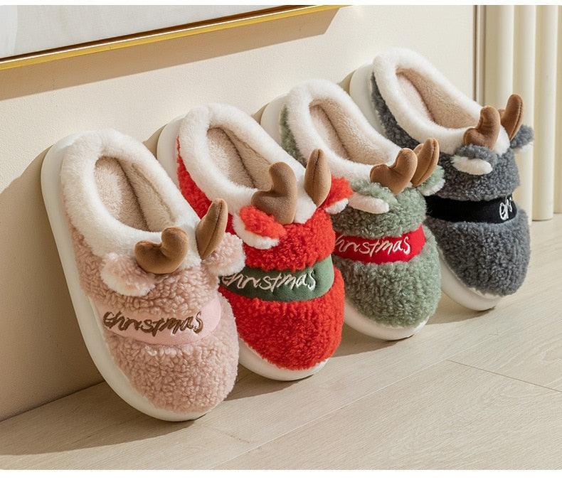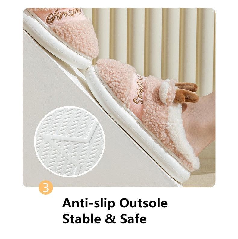 New Thick Sole Christmas Deer Slippers Women Men Indoor Warm Slipper Soft Plush Home Floor Winter Platform Shoes Boys And Girls House Slippers Kids Animal Indoor Slipper Fuzzy Toddler Home Shoes