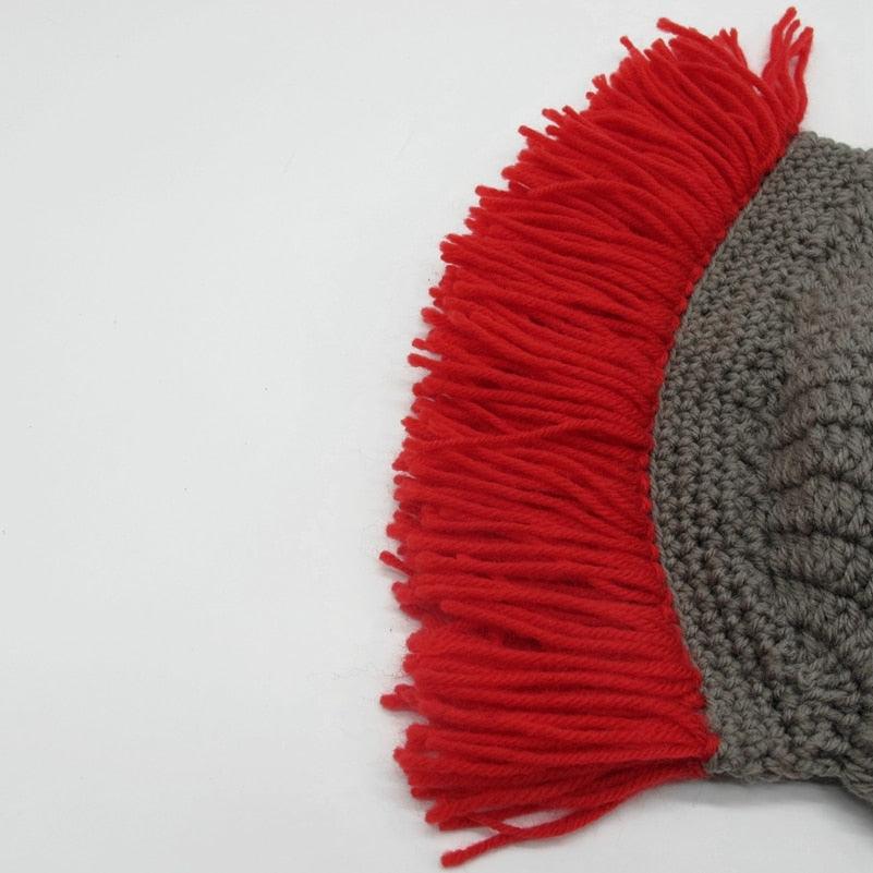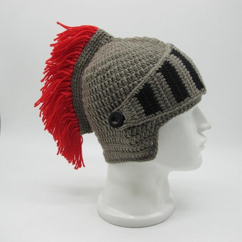 New Winter Handmade Funny Hats Cool Red Tassel Roman Knight Helmet Mask Beanies Cosplay Caps Men Women Gag Party Gifts Men's Handmade Beanie Knit Funny Hat Cosplay Roman Knight Helmet Cap Wig Beard Hats Handmade Knit Warm Winter Caps Ski Funny Mask Beanie