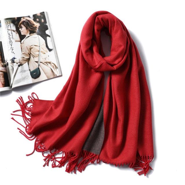 New Fashion Winter Soft Thick Warm Colorful Cashmere Scarf Elegant Escharpe Shawls Scarf Shawls Wraps Lightweight Lady Solid Scarves Fashion Tassels Blanket For Women