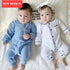 Newborn Baby Girl Boy Rompers Cotton Autumn Spring Infant Toddler Jumpsuit With Collar Pocket In Modern Style