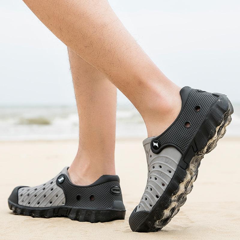 Outdoor Men Sandals Summer Hole Shoes Rubber Clogs Men Garden Shoes Black Beach Sandals Slippers Breathable Lightweight Sandals Unisex Beach Quick Drying Sandals Couple Outdoor Slippers