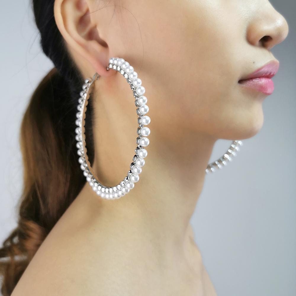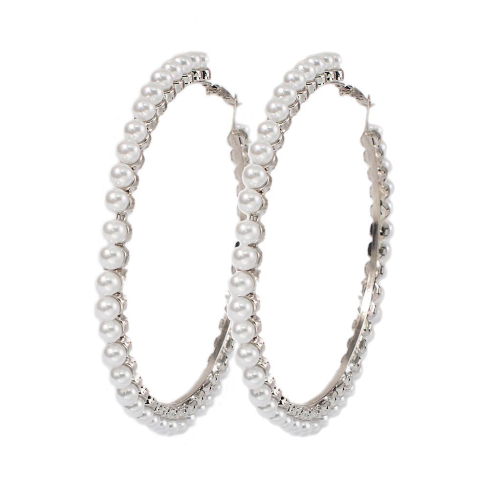 Denifery Huge Gold Hoop Earrings Pearls Circle Earrings for Women Girl Lady Wedding Fashion Womens Jewelry (Gold) Wedding Jewelry