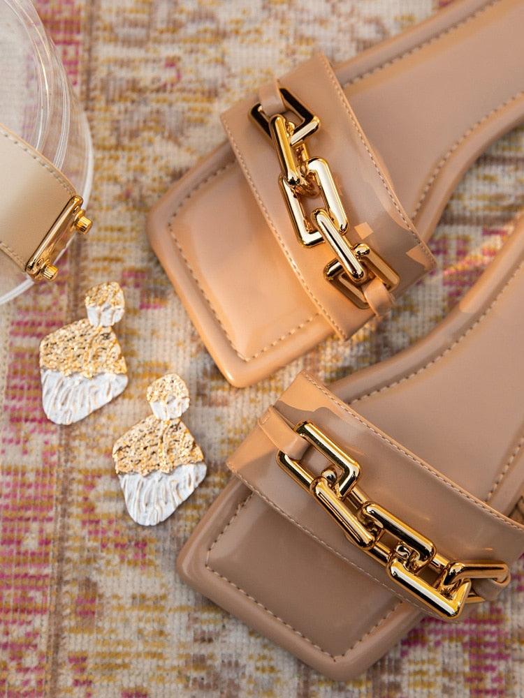• GOLD CHAIN DESIGN:Crafted from soft leather upper with gold chain decoration,the sandals can offer you comfy, elegant and causal of wearing experience. Open toe one band- style offers you a superior fit and allow you to move through your day in relaxed comfort.