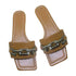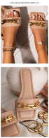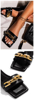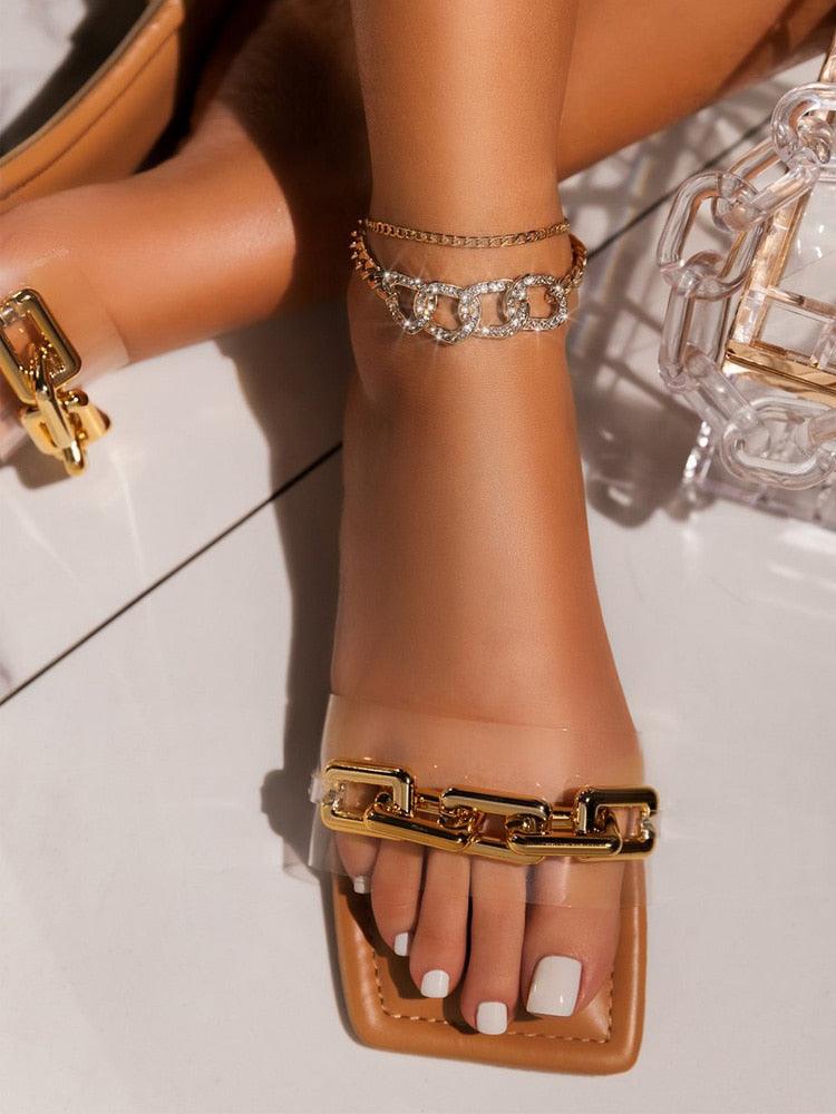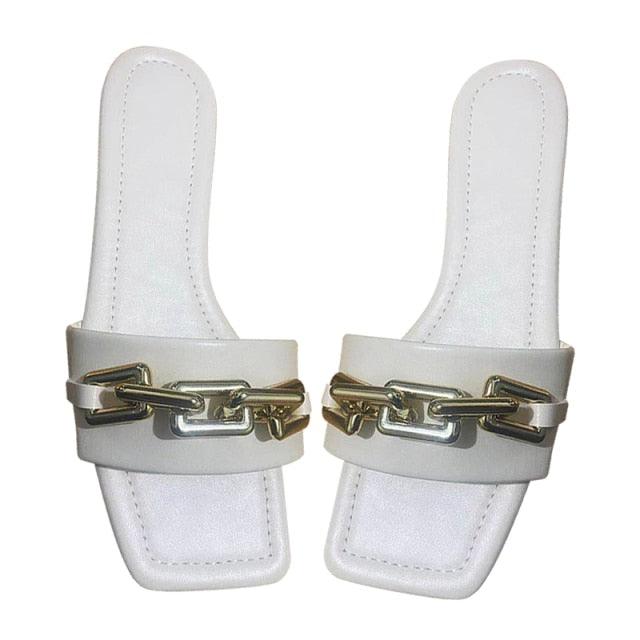 Purple Women's Slippers Summer Gold Chain Luxury Square Head Flat Heel Outdoor Beach Women Slides Sandals Leather Flat Sandals Strap Slides With Chain Open Toe Summer Slippers
