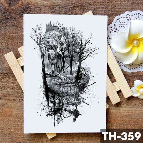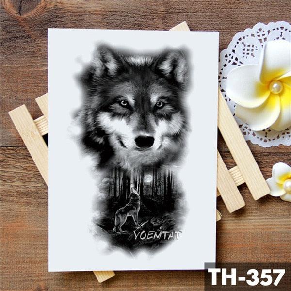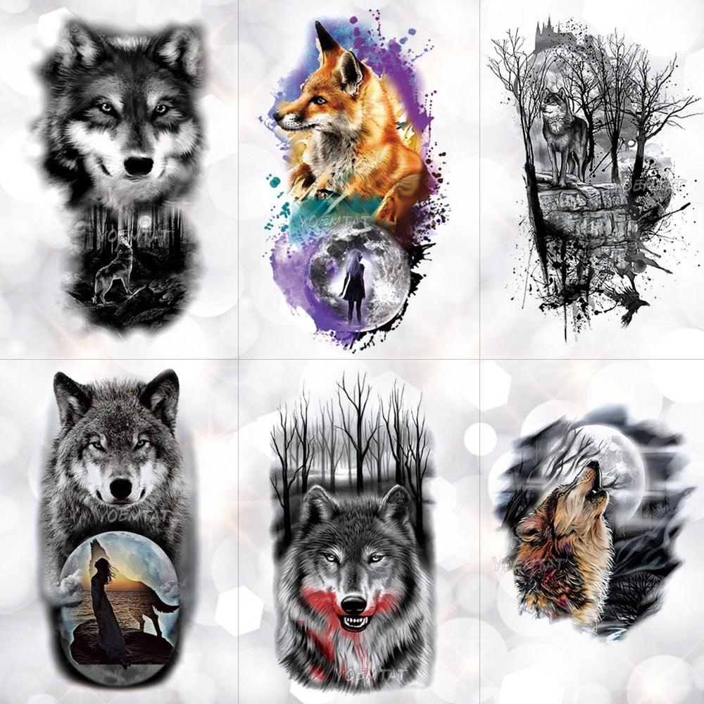 Realistic 3D Wolf Moon Temporary Tattoo Sticker Waterproof Stylish Body New Luxury Animal Tattoo For Men Women