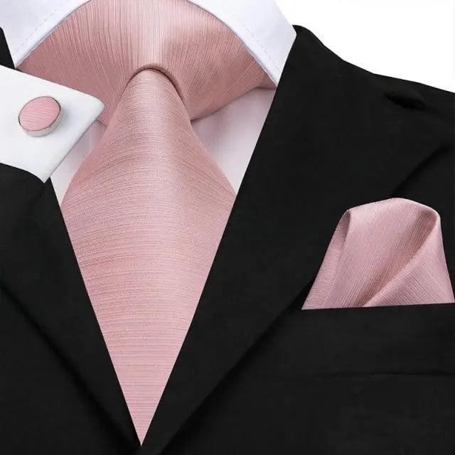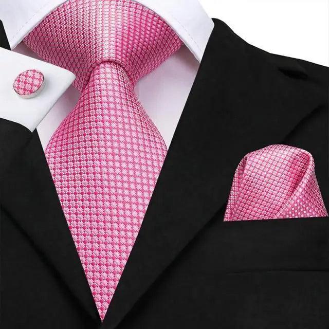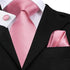 Elegant Pink Silk Necktie Pocket Square Cufflinks Set Elegant Men's Fashion Wedding Ties For Men And Daily Wear Ties