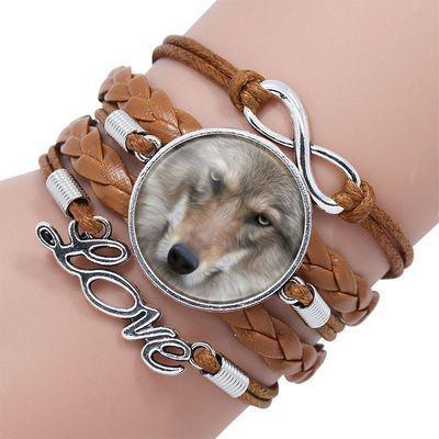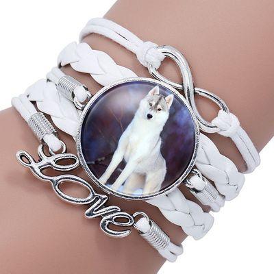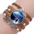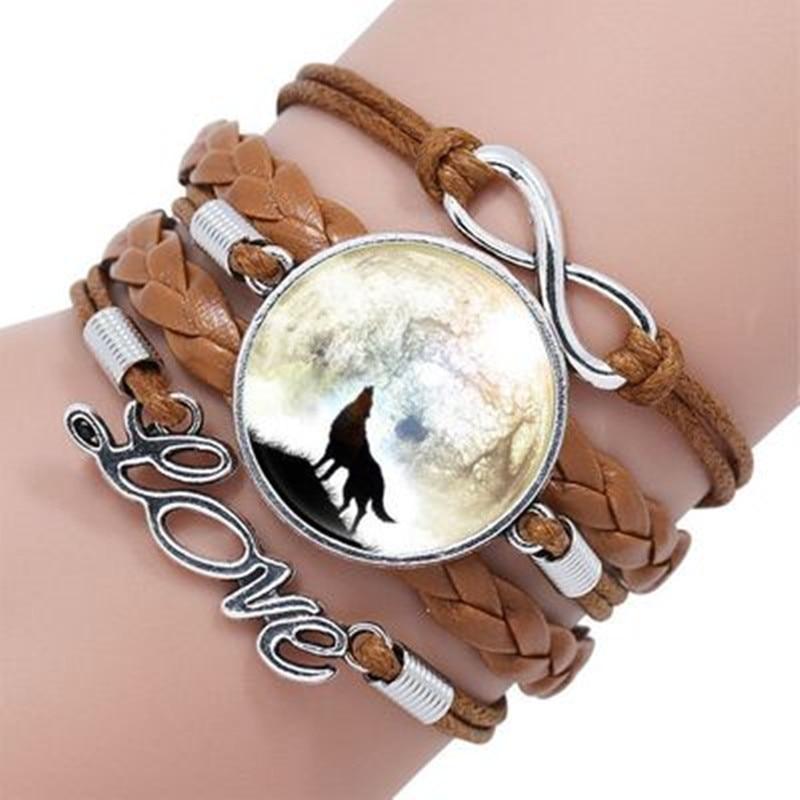 Classic Retro Wolf Head Elegant Bracelet Leather Bangle Luxury Bracelet Jewelry Boho Glass Moon Men Wrap Bangles For Men Women
