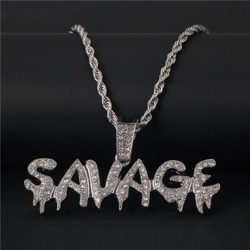 • DETAIL: Hip Hop Savage Necklace 1 x SAVAGE pendant, 1 x rope chain.Savage pendant length :1.18inch/30mm,width:1.97inch/50mm.pendant hole length 10mm/0.4inch,width 6mm/0.25inch.rope chain lenght:24" and 30"