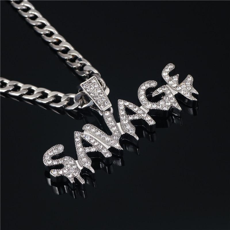 New Modern Trendy Savage Letter Elegant Necklace And Luxury Pendant Shiny Ice Out Link Chain Amazing Necklace With Tennis Chain Choker Hip Hop Jewelry For Men And Women