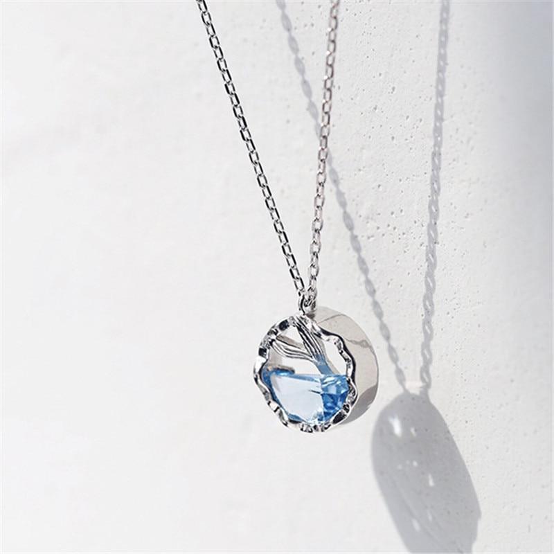 Silver Plated Mermaid Tears Foam Necklace Simple Mermaid Tail Blue Crystal Clavicle Chain for Women Luxury Accessories Jewelry Design