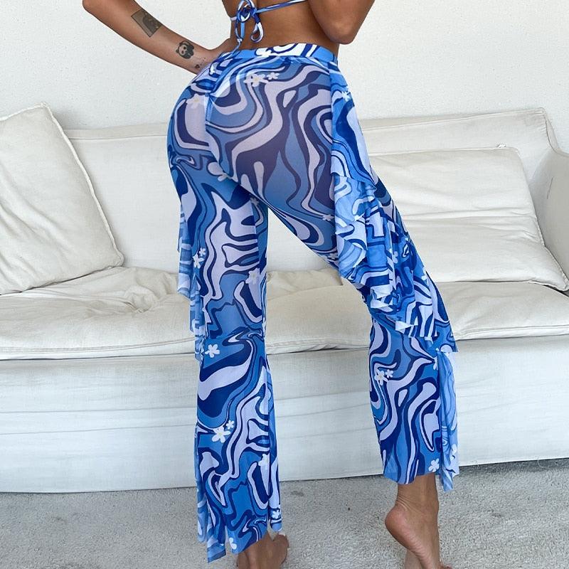 • 3 PIECE BIKINI SET- Our swimwear set with mesh cover dress featuring strappy bralette bra, adjustable ties at neck and back, and a high waist bottom with a mesh maxi Wrap Skirt, elegantly accentuates your curves.