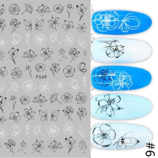 Spring Abtract Stripe Lines Flower Leaves 3D Nail Sticker Black White Butterfly Transfer Decals Slider Nail Art Decoration Decals Sticker For Pretty Girl Self-Adhesive Nail Decals Designer Nail Stickers for Acrylic Nail Art Decals Water Transfer Nail
