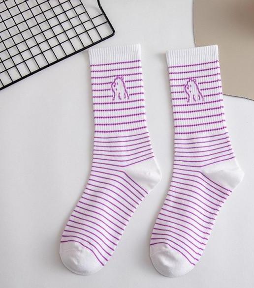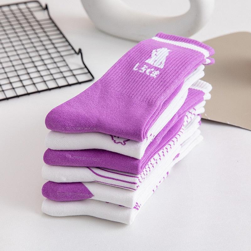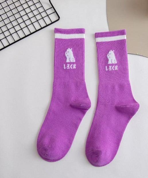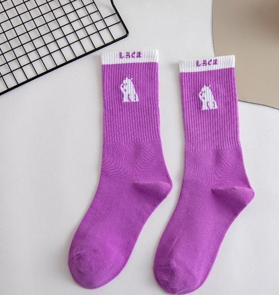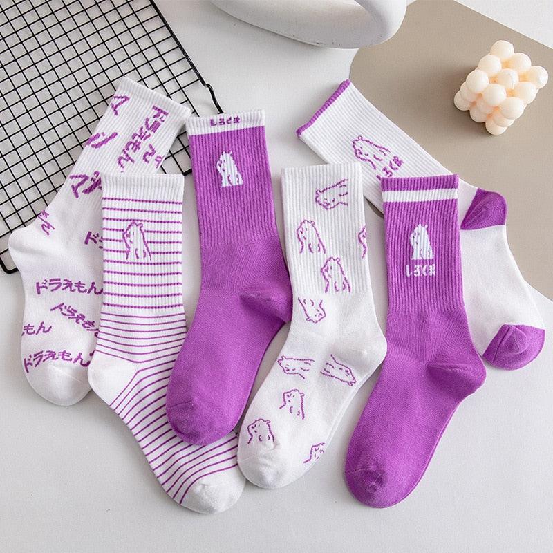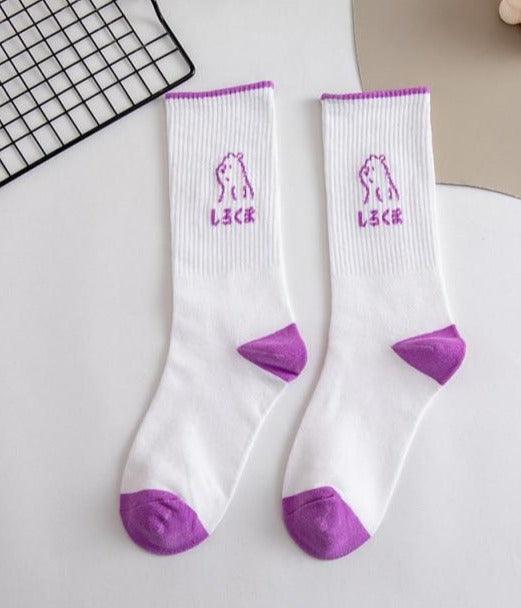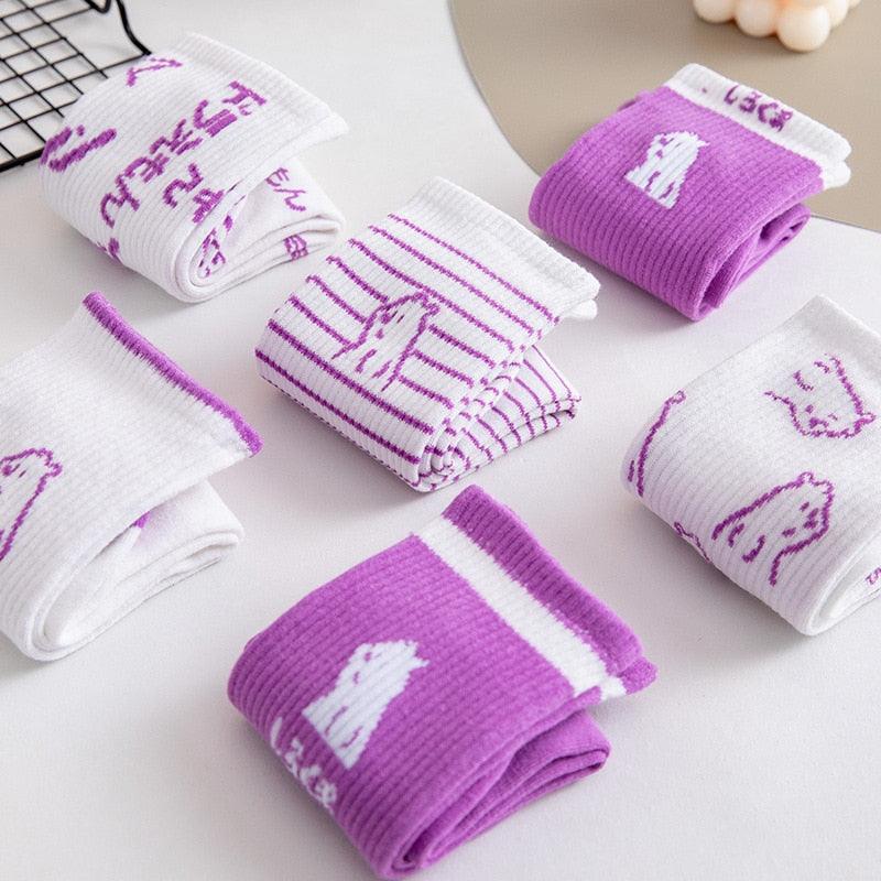 Spring And Summer Combed Out Of Pure Cotton Socks Mid Waist Fashion Bear Socks Cute Animal Socks Kawaii Cute Cartoon Purple College Socks For Men And Women