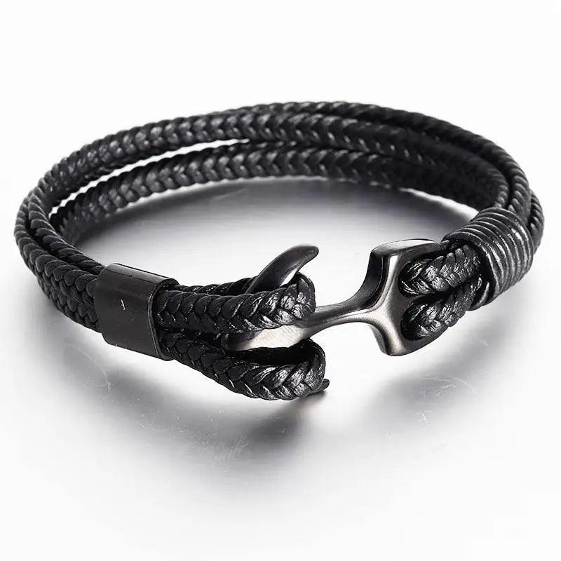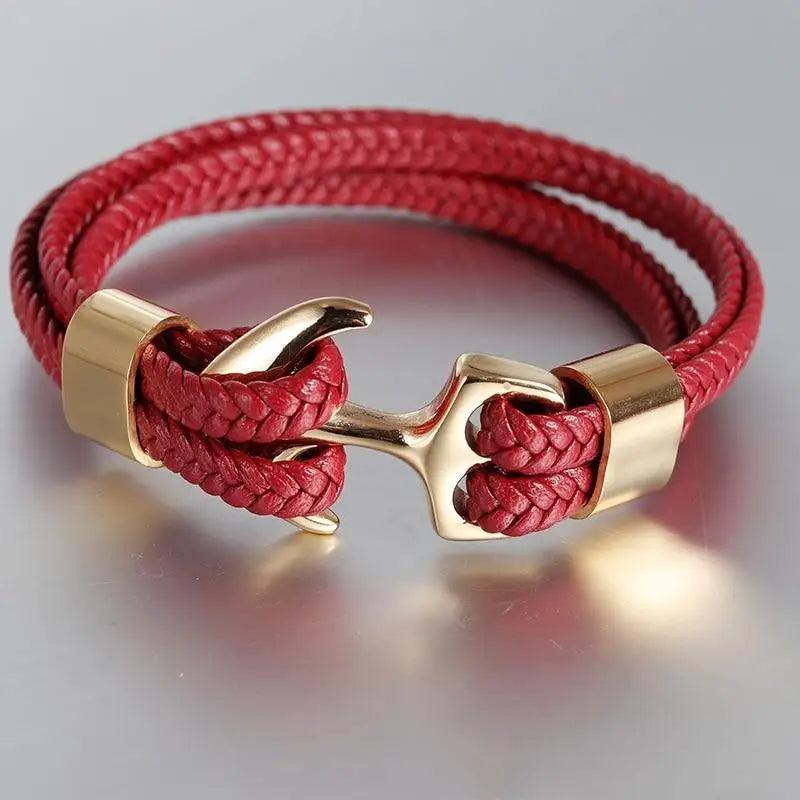 Modern Luxury Stainless Steel For Men Bracelet Legendary Red Genuine Leather Gold Black Anchor Multi-Layer Braided Bracelet Homme Elegant Men Jewelry