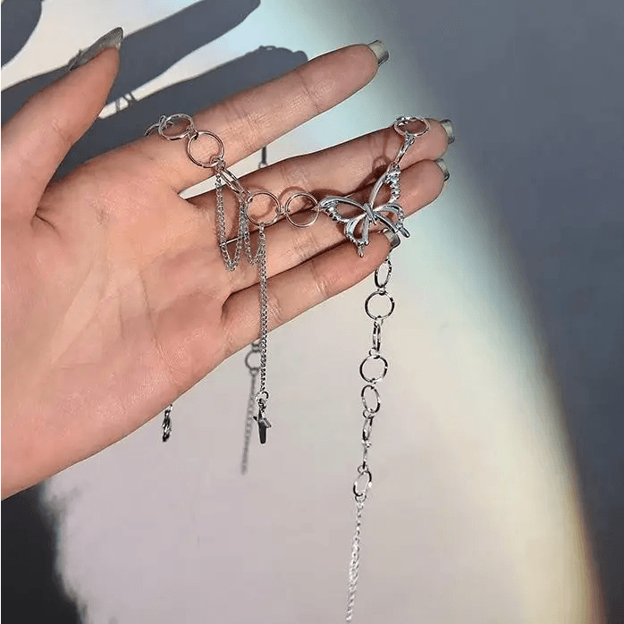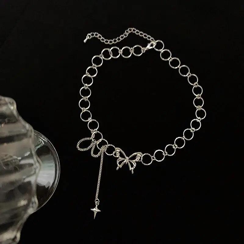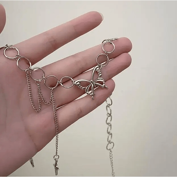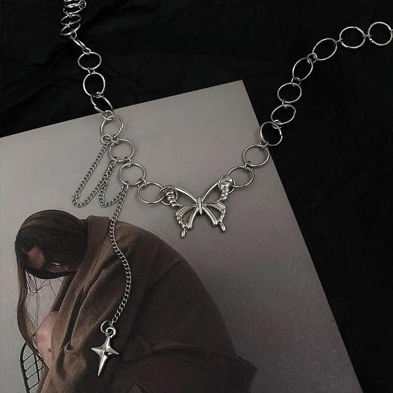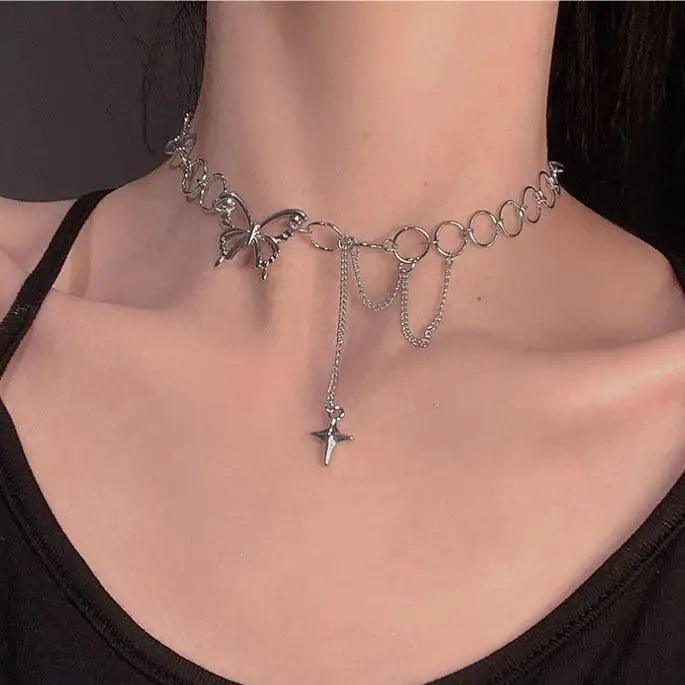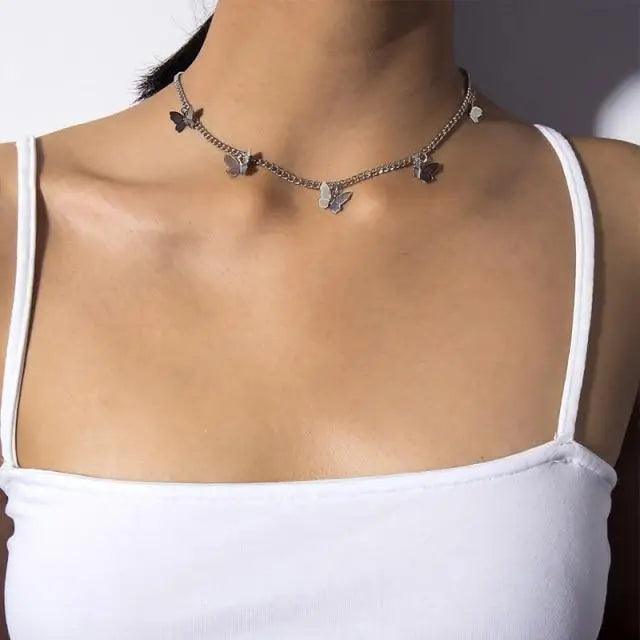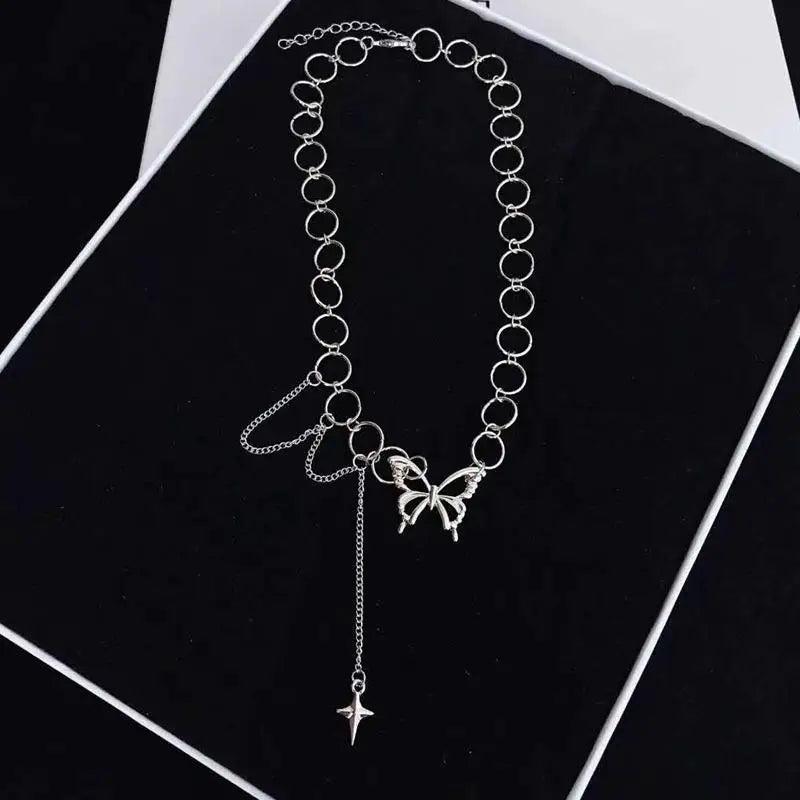 Sterling Butterfly Choker Necklace Hip Hop Link Chain For Women And Girls Vintage Style Female Gift Jewlery