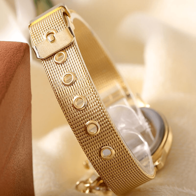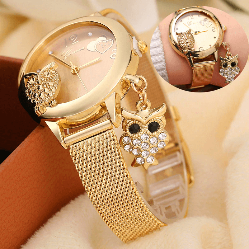 STEVVEX Gold Watch Brand Quartz Women Rose Gold Stainless Steel Mesh Belt Ladies Wristwatch Female Clock Owl (Gold) For Women and Girls
