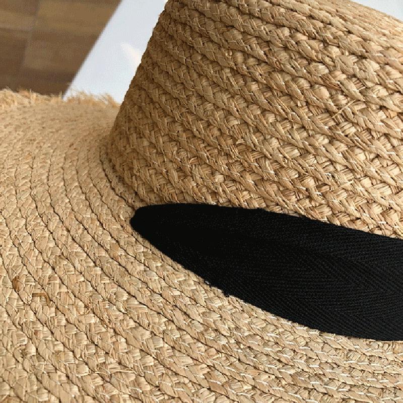 Vintage Straw Hat Women Wide Sun Protection Beach Hat Black And White Ribbon Bowknot Cute Design Straw Cap Women Elegant Summer Hat Beach Fedoras Casual Ladies Flat Top Hat