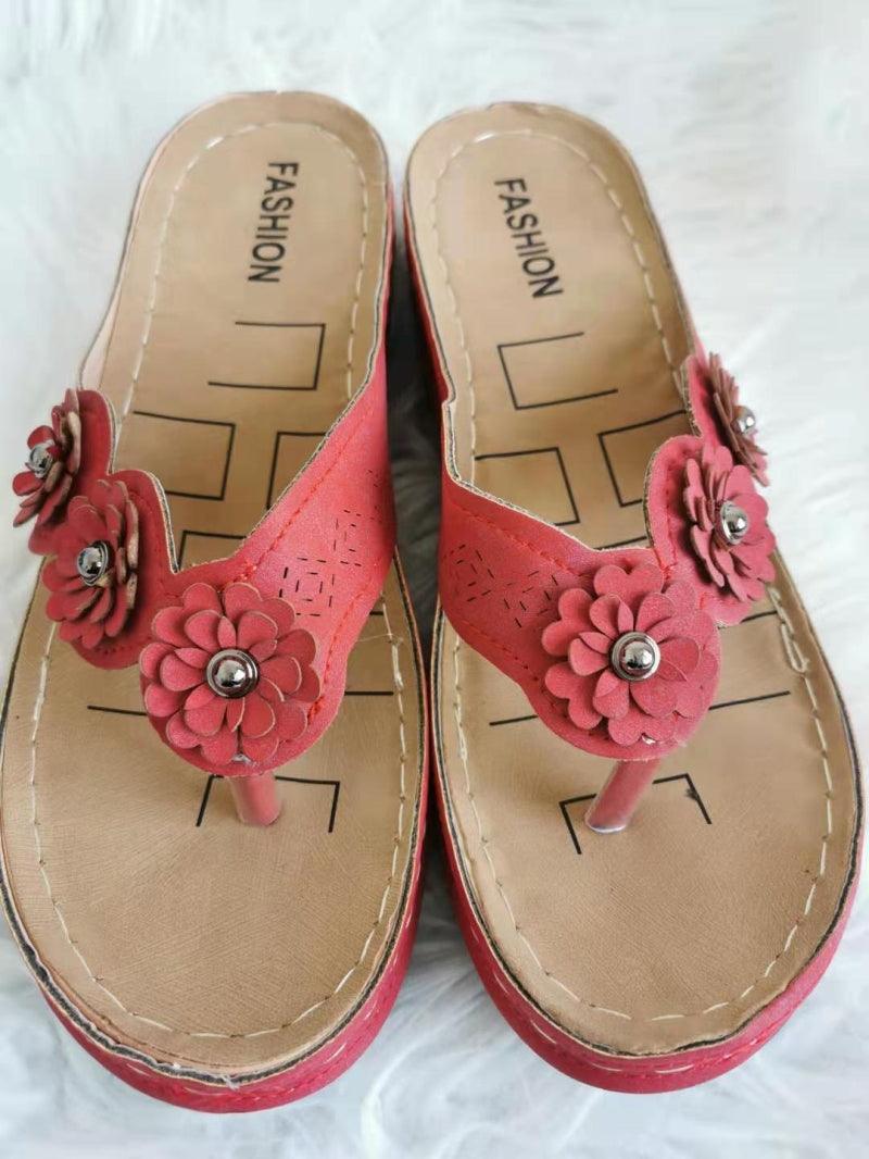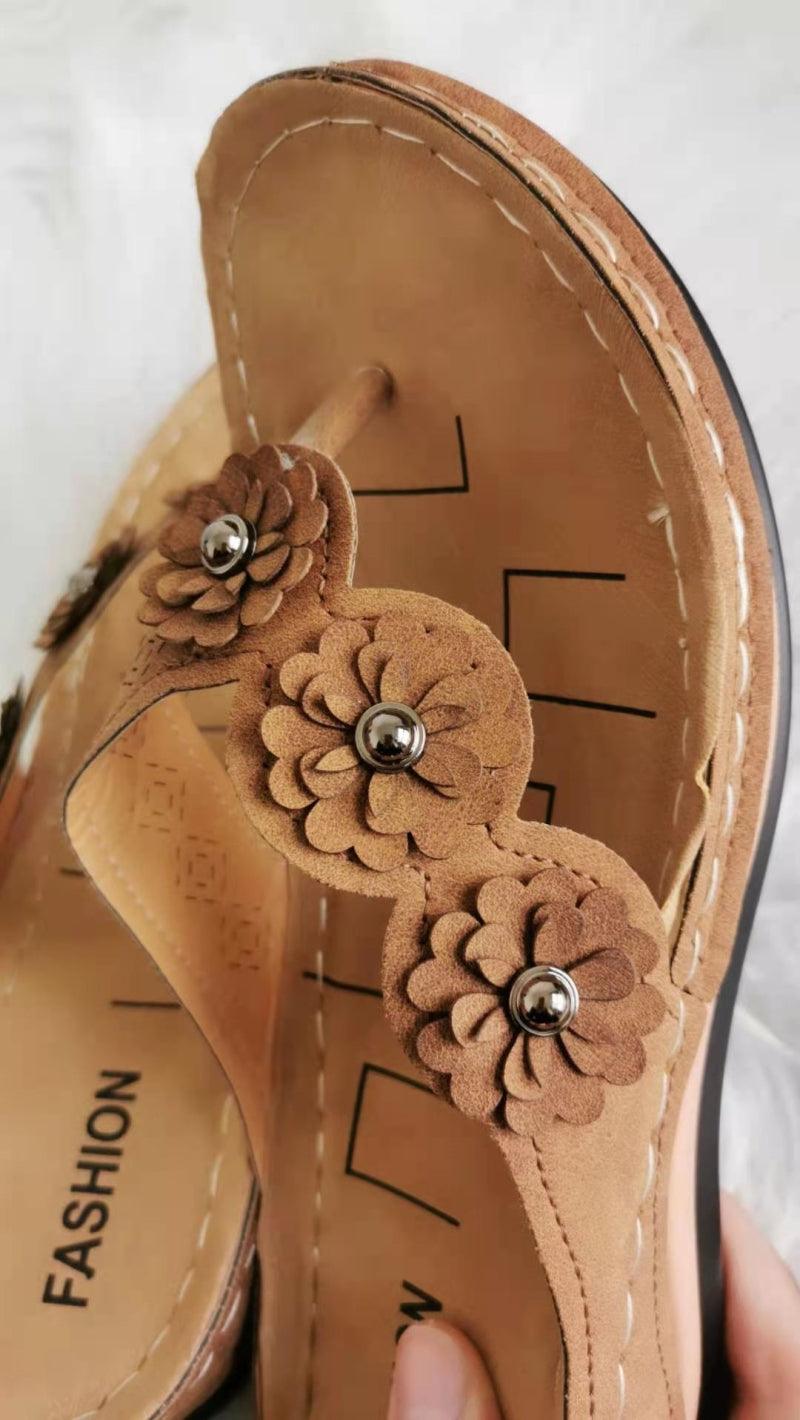 • RETRO STYLE SANDALS: PU leather flower decoration design, retro, sweet,  beach sandals, eye catching and gorgeous, add sparkle to outfits, can be a practical gift for your girl friend or family.