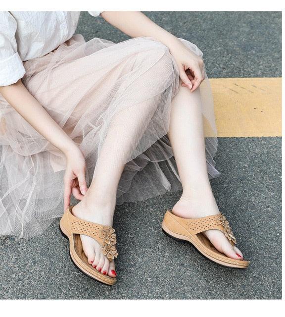 Summer Flat Sandal For Women Multicolor Handmade Retro Flowers Flip-Flops Women Slippers Cute Flat Summer Flats Sandals Women Strappy Flat Open Toe Sandals