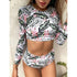 Surfing Swimsuit For Women Bikini Long Sleeve Swimwear Tiger Print Push Up Summer Bath Suit Two Piece Surfing Rash Guard Bikini Long Sleeve Swimsuit Set