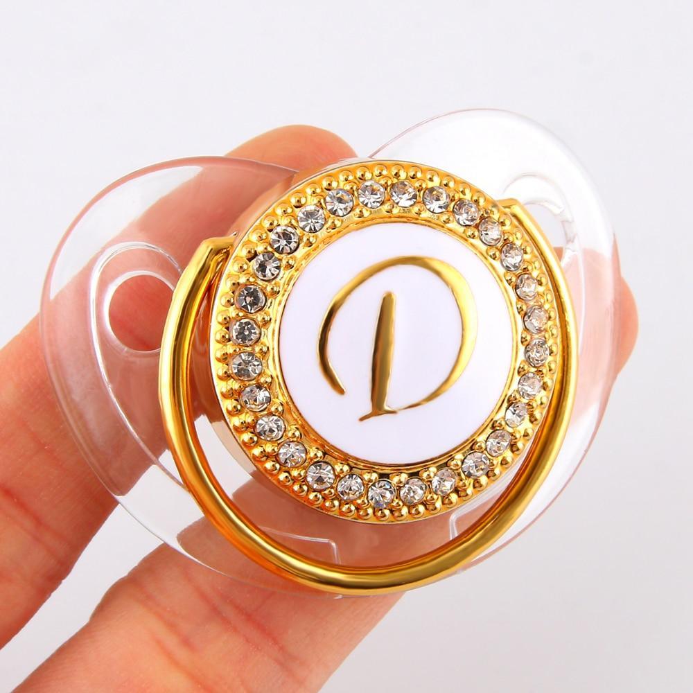 Modern Luxury Diamond Transparent Baby Pacifier Luxury Initials Letter D Bling Pacifier Rhinestone For Baby