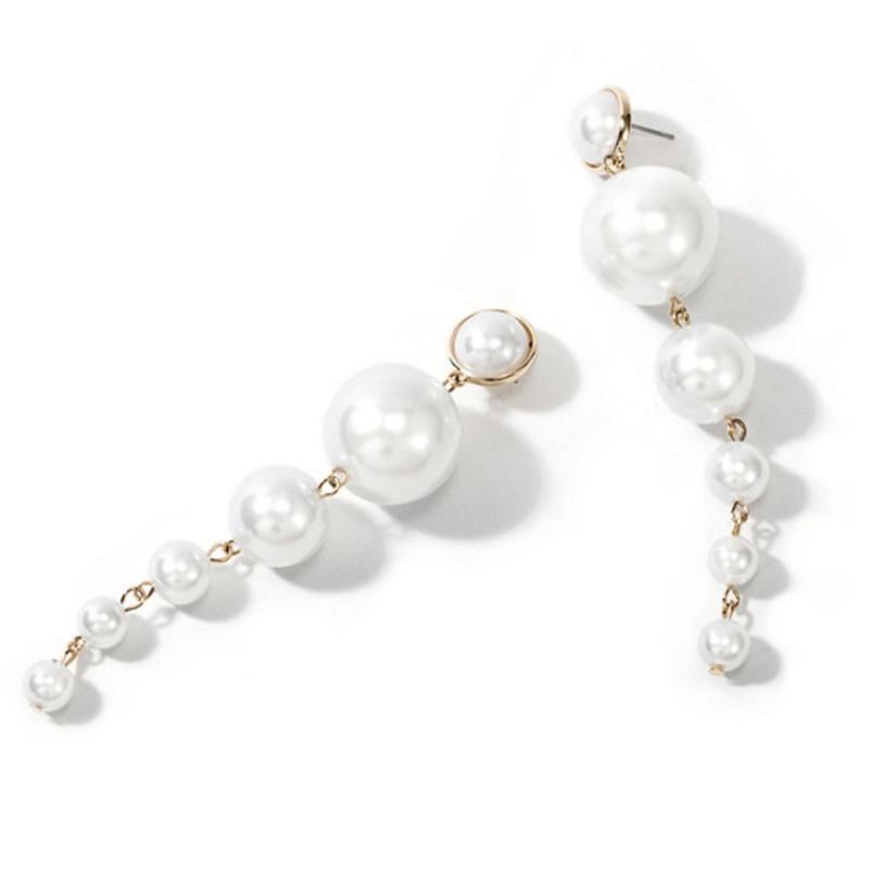 New Luxury Trendy Elegant Big Simulated Pearl Long Earrings With String Statement For Women