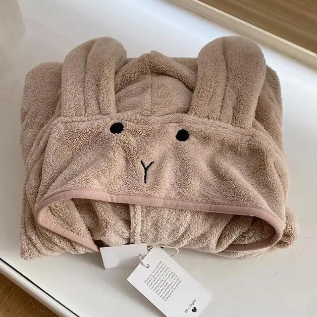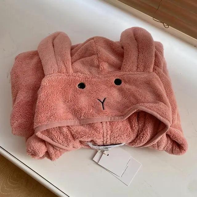 Trendy Rabbit Cartoon Bathrobes For Girls Boys Unisex Soft Hooded And Comfortable Kids Vintage Design Bathrobes