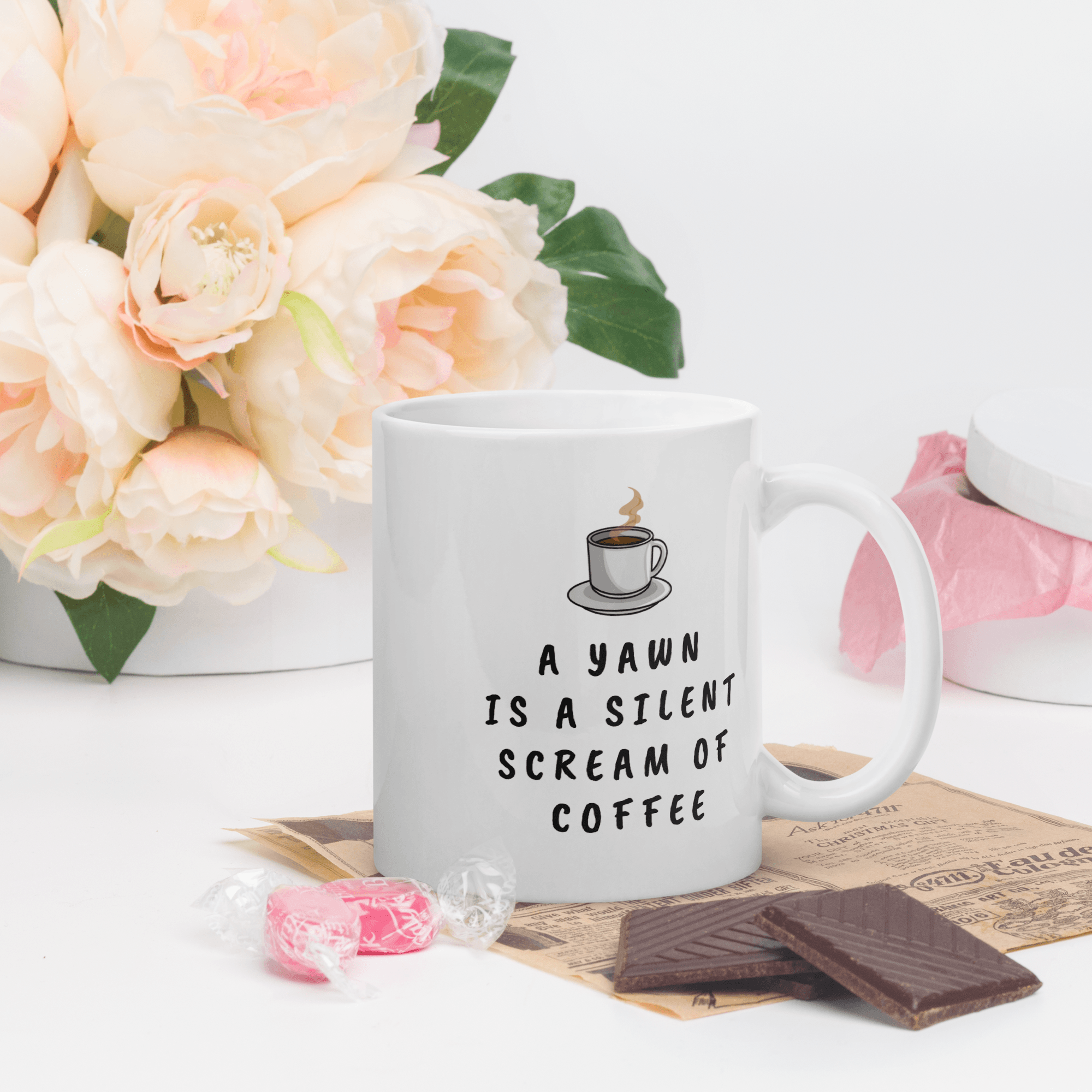 Unique Ceramic Coffee Mugs "A Yawn is a Silent Scream of Coffee" Funny Quote Coffee Mug for Husband, Friend Gifts, Coffee Mug Christmas Gifts Gift for Lovers Valentines Day for Husband, Boyfriend, Wife, Girlfriend, Cute Gifts for Loved Ones