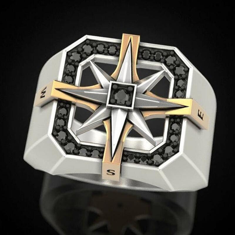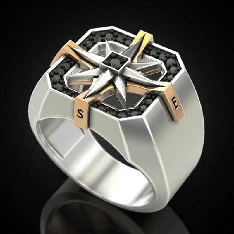 Unique Design Men's Creative Vintage Rings Stainless Steel AAA Zircon Inlay Two Tone Viking Compass Ring for Men Weeding Luxury Design