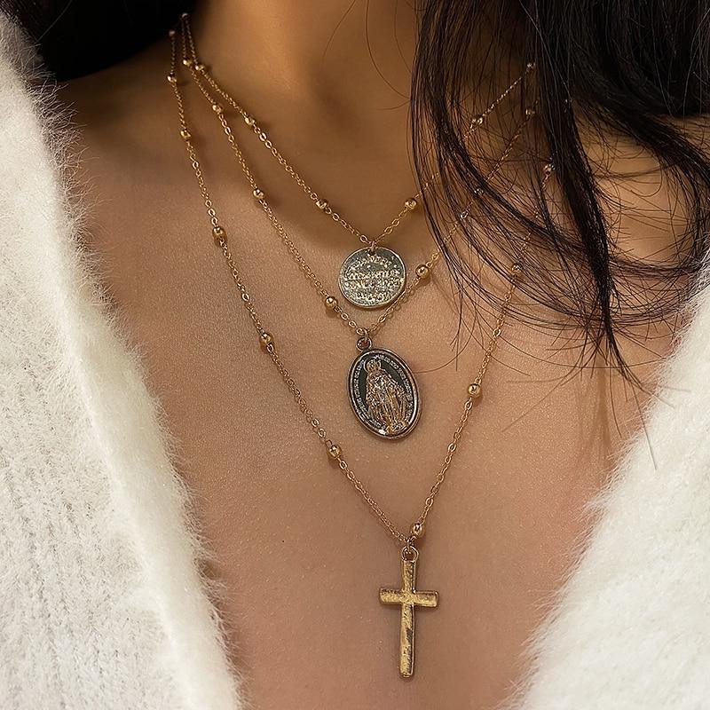 Modern Vintage Multilayer Crystal Gold Choker Pendant Necklace For Women Luxury Jewelry Perfect Gift Cool Style