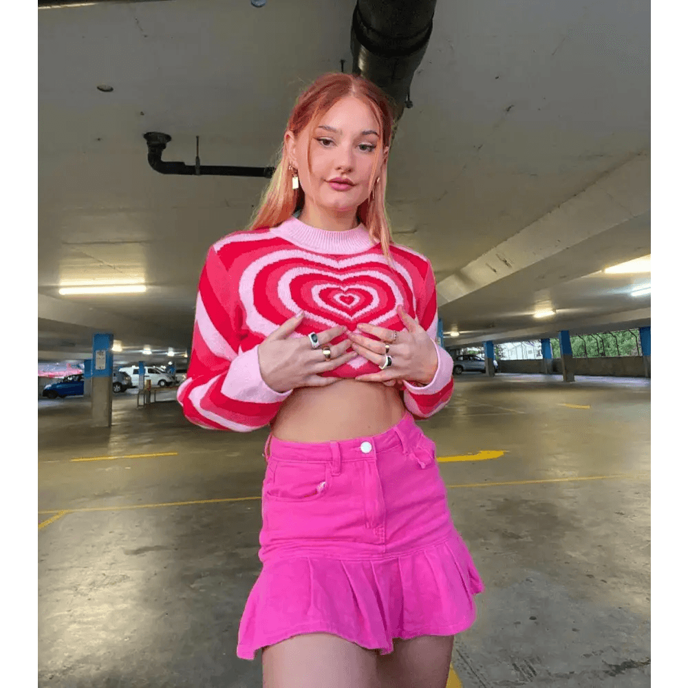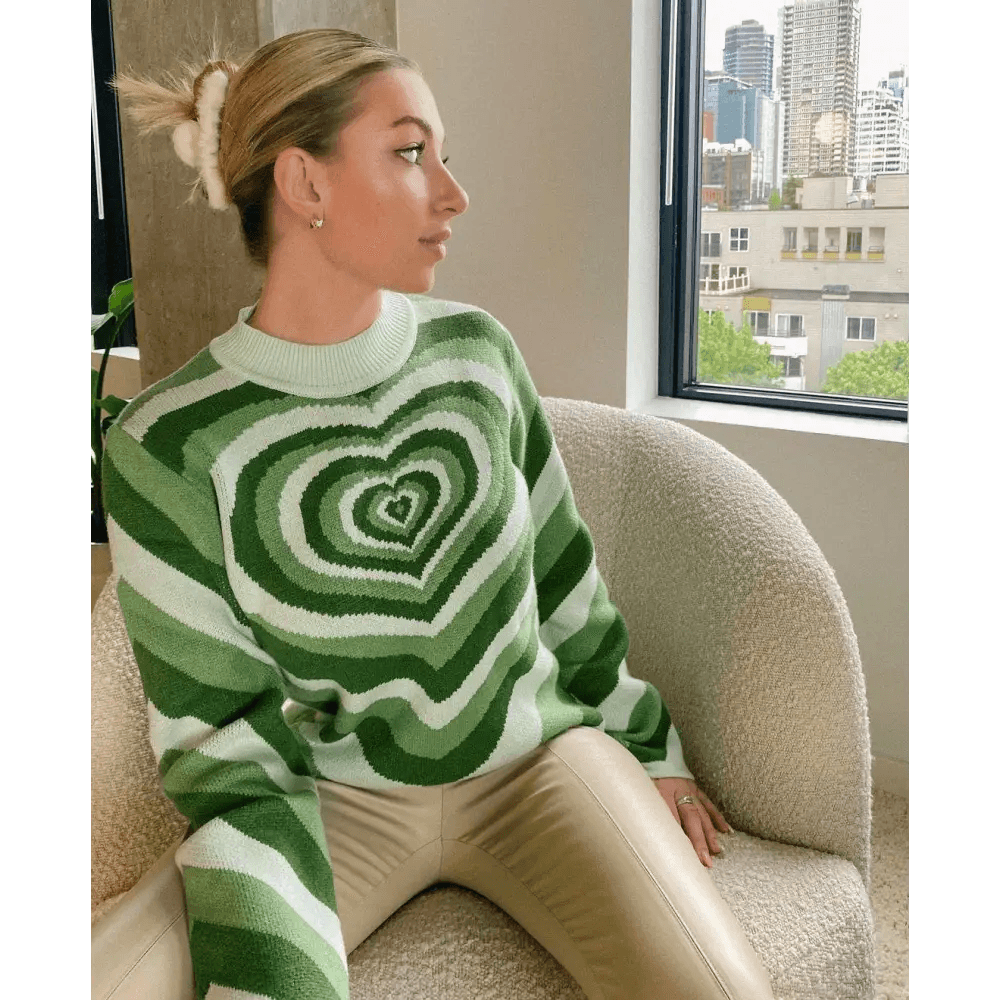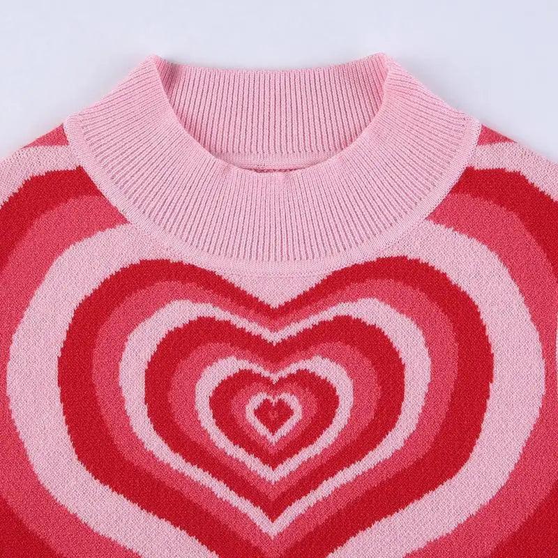 Vintage Style Knitted Sweater Aesthetics Heart Striped Pullovers Sweater For Girls Sweet Long Sleeve Turtleneck Jumper Autumn Streetwear