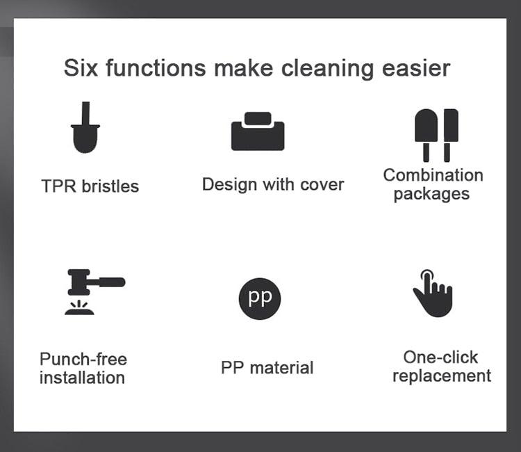 • FLEXIBLE BRUSH- Flexible and fine brush can clean any edges of toilet. Landing or hanging on the wall ,double choice.