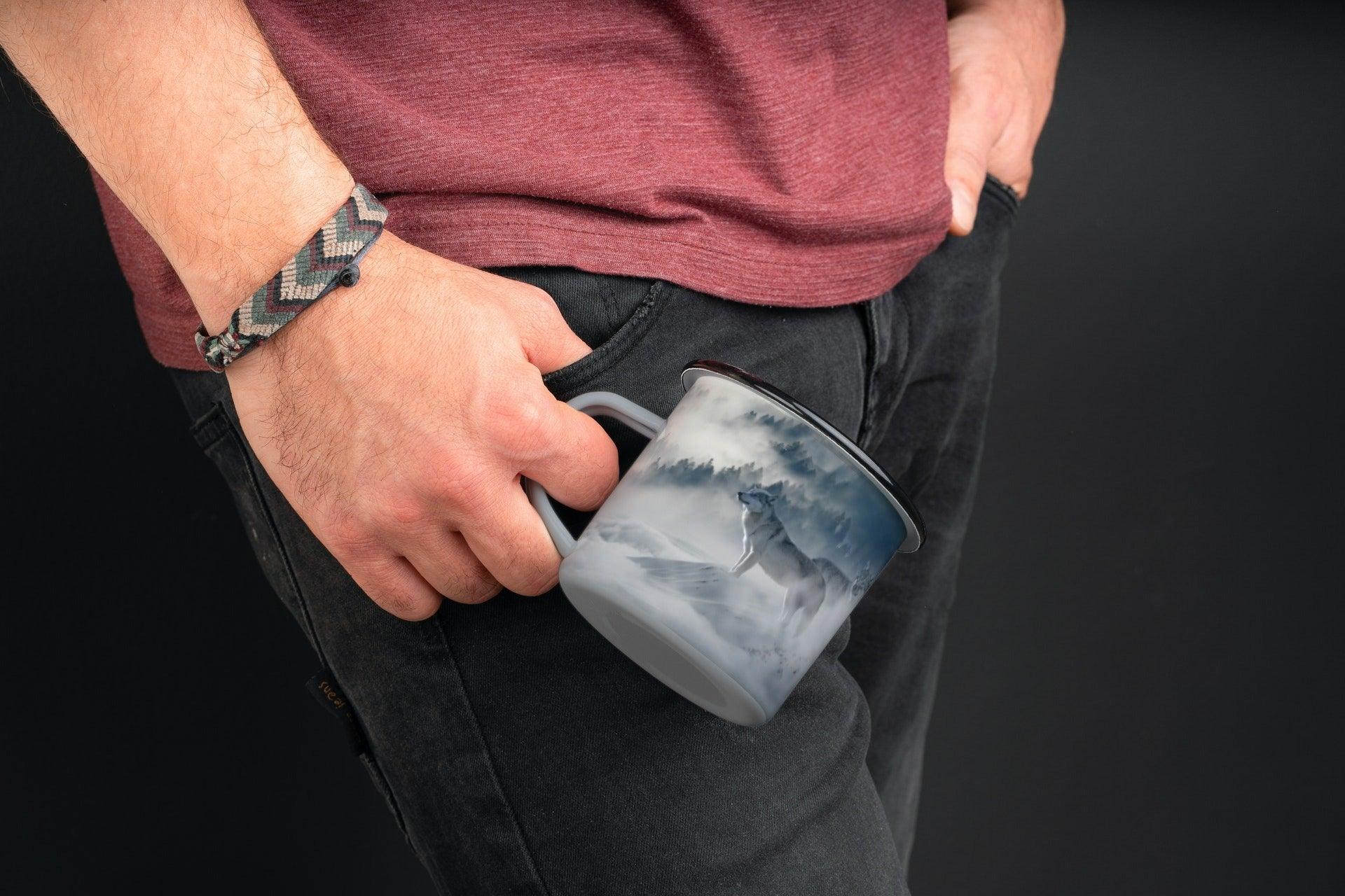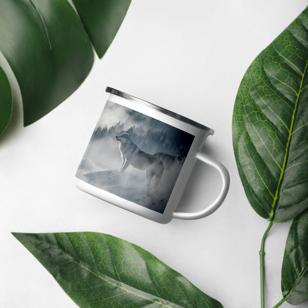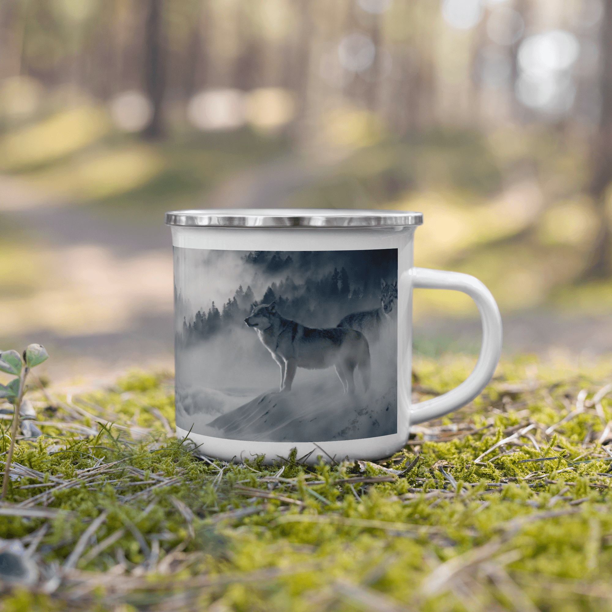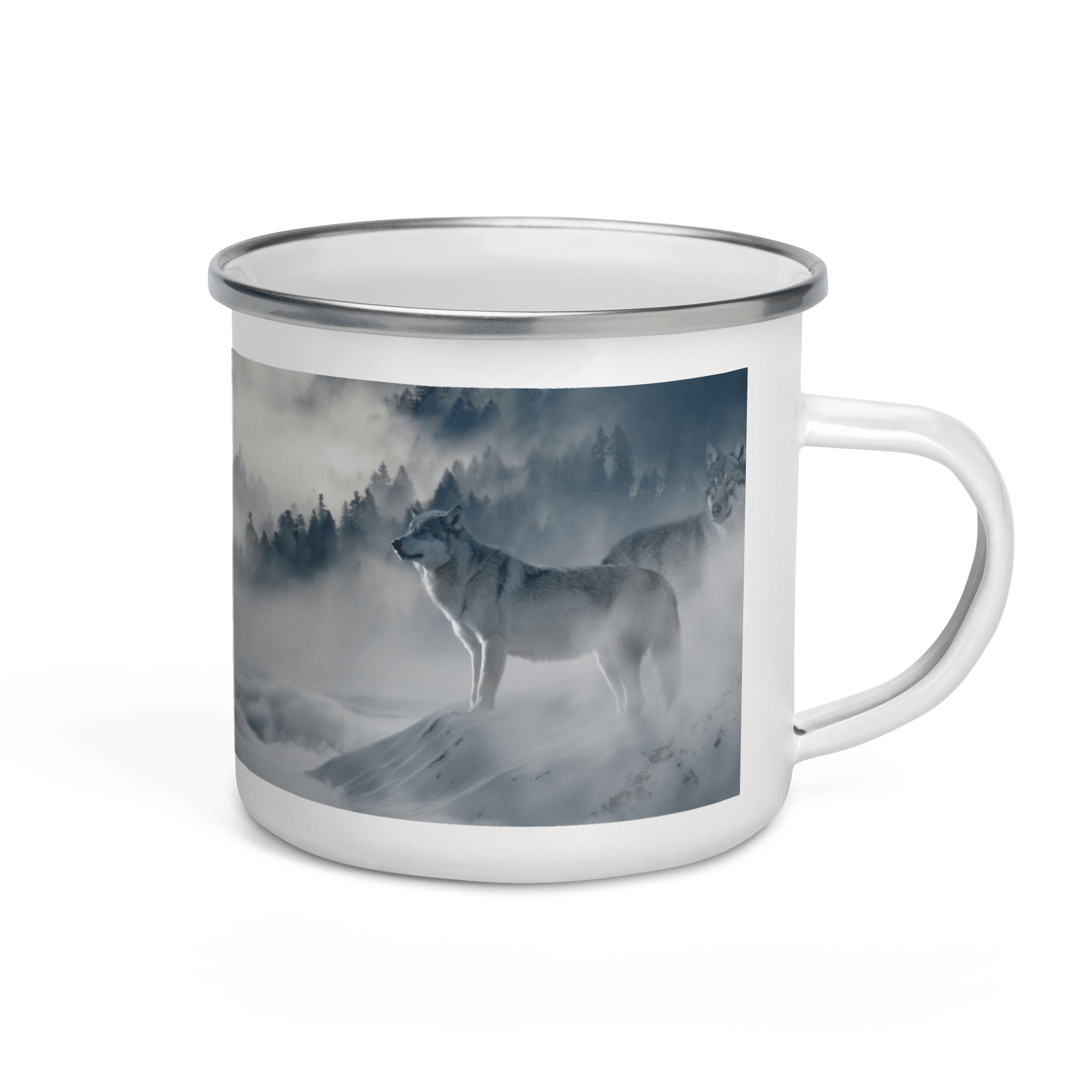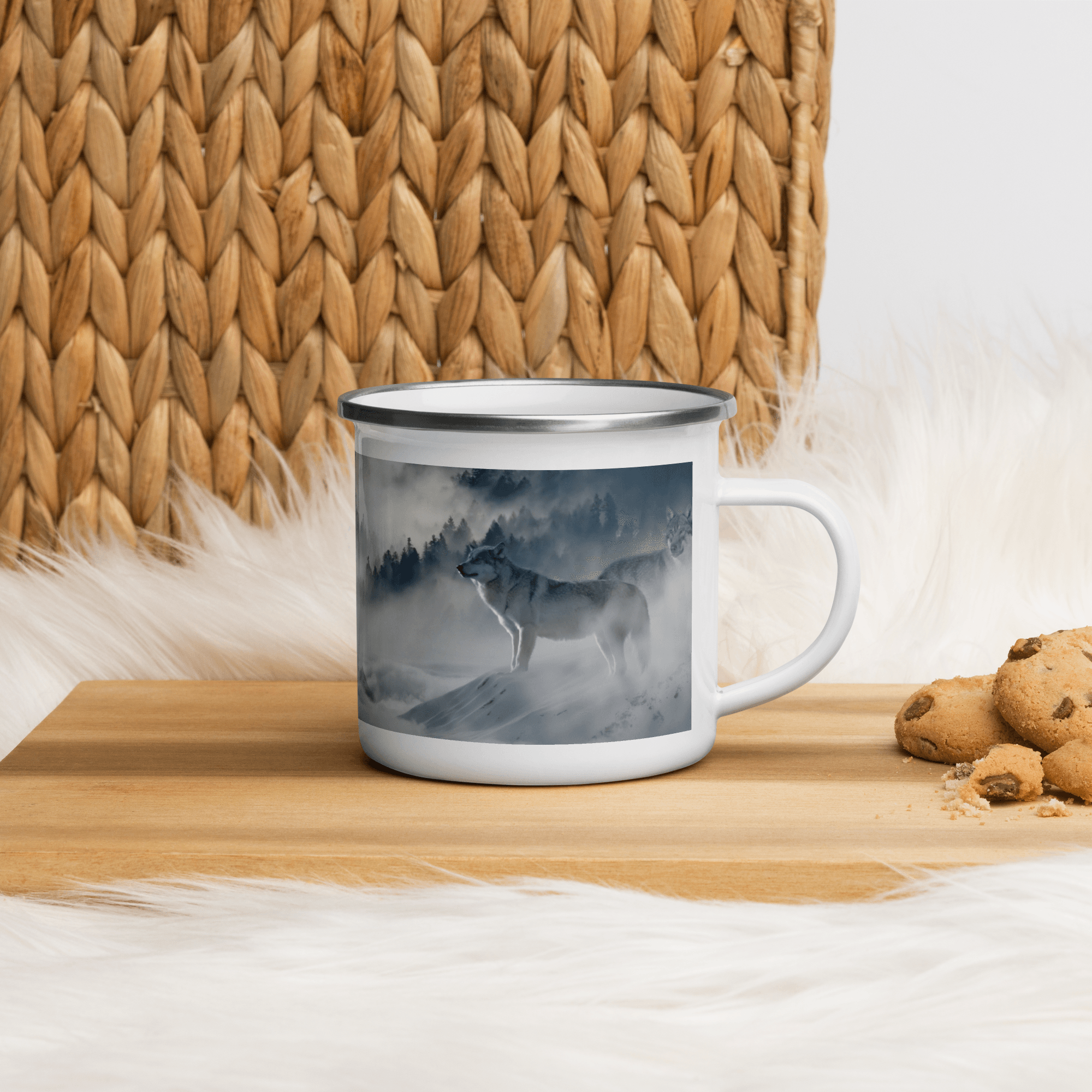 Wolf Staying In Snow On Foggy Snowy Mountain Enamel Mug Full Printed Mug For Tea Cup Coffee Mug Soup mug Metal Cups Travel Mugs for Coffee Mug Set for Backpacking & Hiking