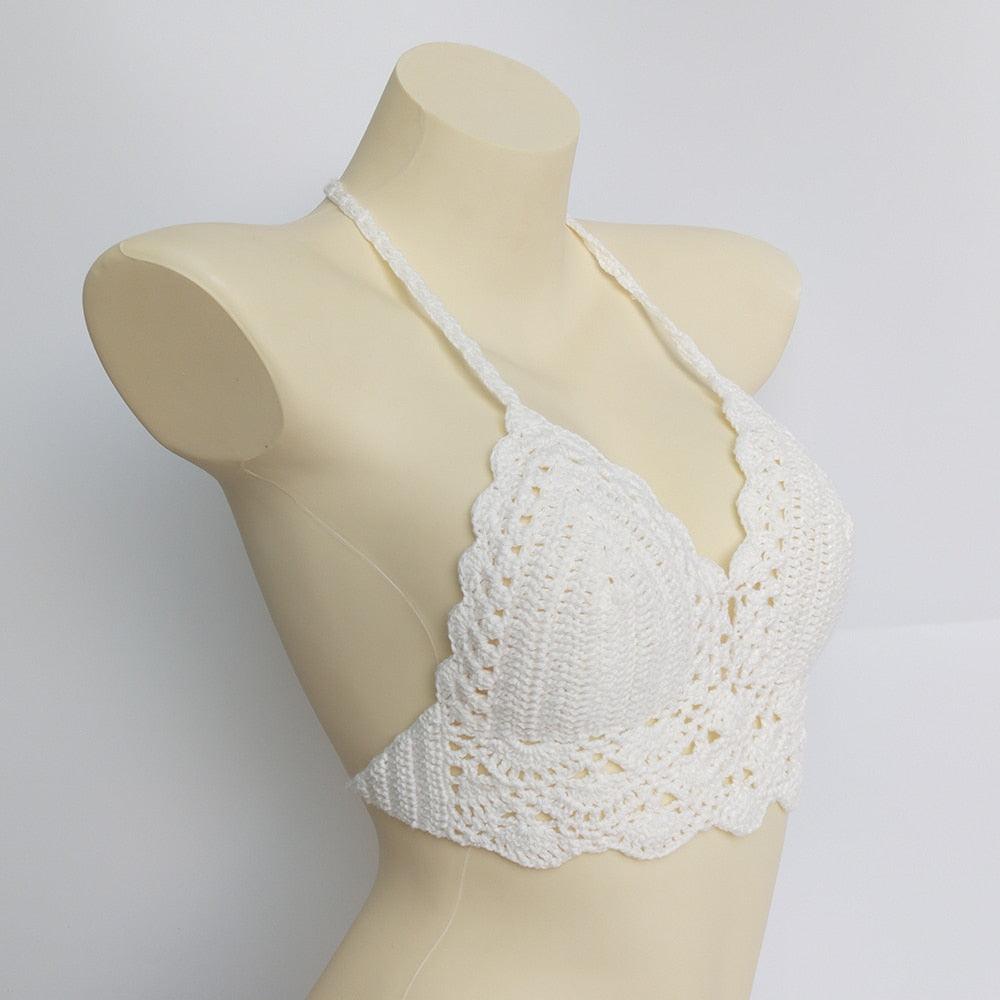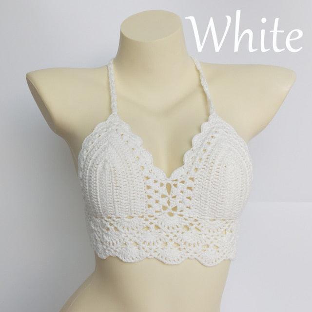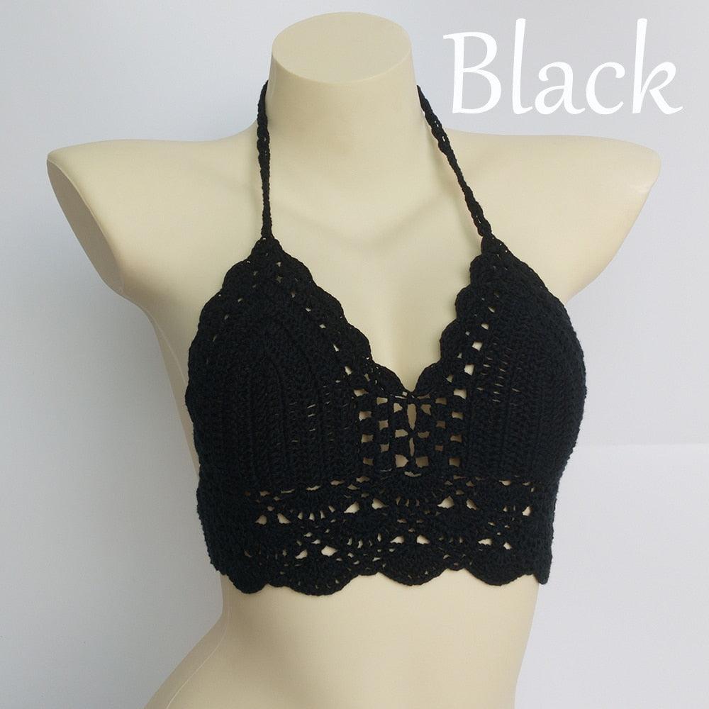 Woman Bikini Top Crochet Knit Separate Female Women Comfortable Beach Crochet Crop Summer Halter Tank Top Beach Knit Bra Beachwear Plus Size Bathing Suits Summer Beach Crochet Crop Tank Top