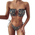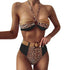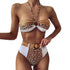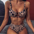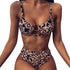 Women Luxury Leopard High Waist Bikini Swimsuit Women's Push Up Bra Tie Side Cutout Bikini Set High Cut Padded Solid Bating Suit Swimwear Female Bikini Set Bathing Suit