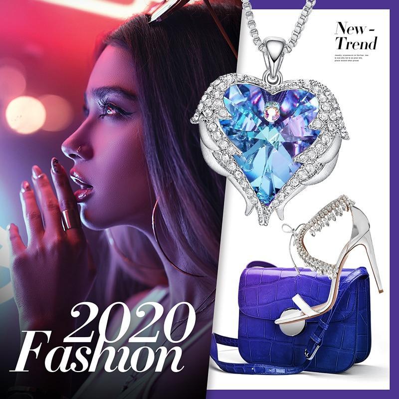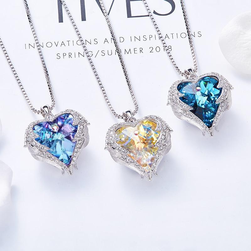 Elegant Women Silver Color Necklace Modern Embellished With Crystals From Stevvex Necklace Angel Wings Heart Luxury Pendant Valentines Gift