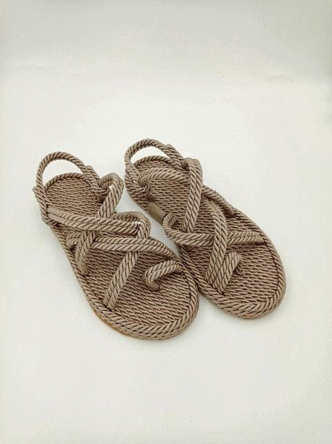 Women Summer Straw Rope Mesh Sandals Cross Tied Flat Sea Beach Casual Light Multi Elegant Design Flip Flop Trend Fashion High Quality Handmade Natural Comfortable Walking Sandals With Arch Support For Women
