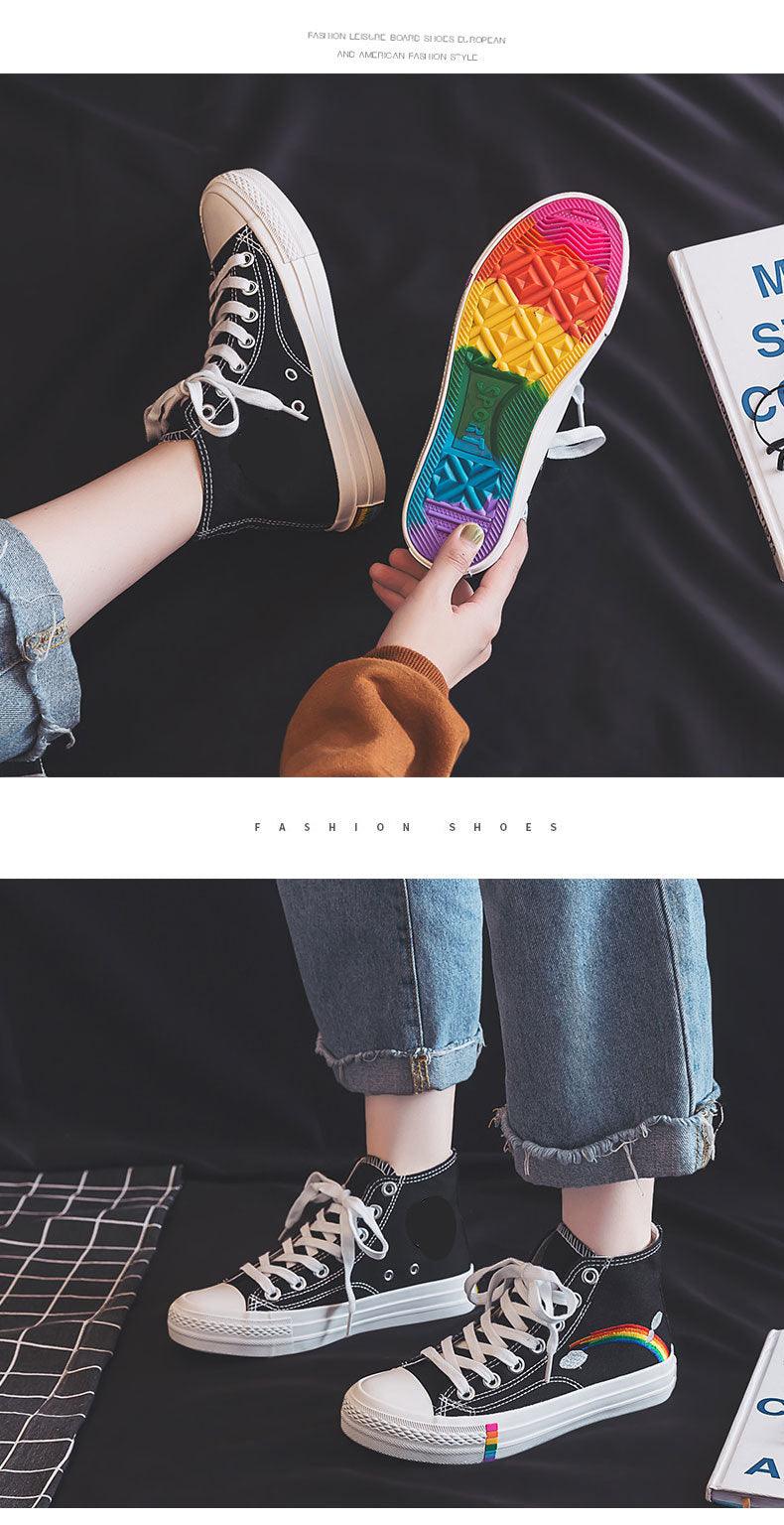 Women's Fashion Vulcanized Sneakers New Rainbow Retro Canvas Shoes Flat Fashion Comfortable Womens Canvas Shoes Sneakers Low Top Tennis Sneakers
