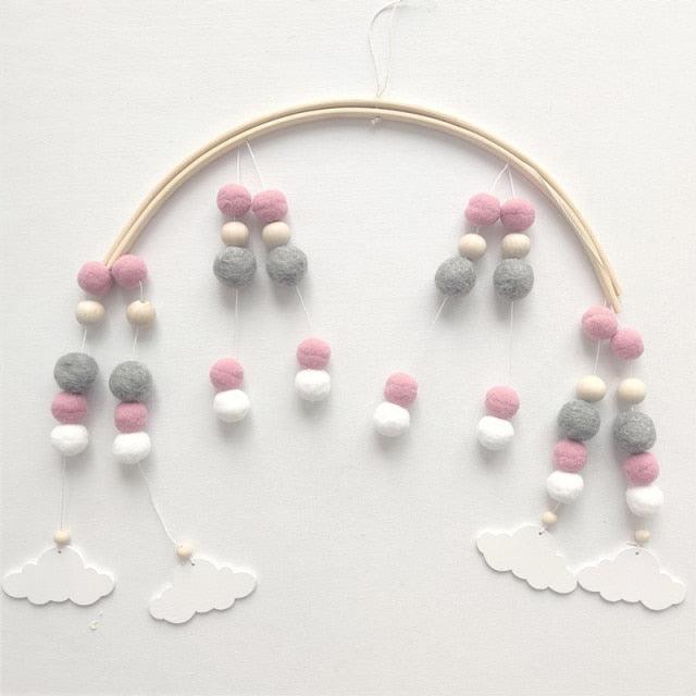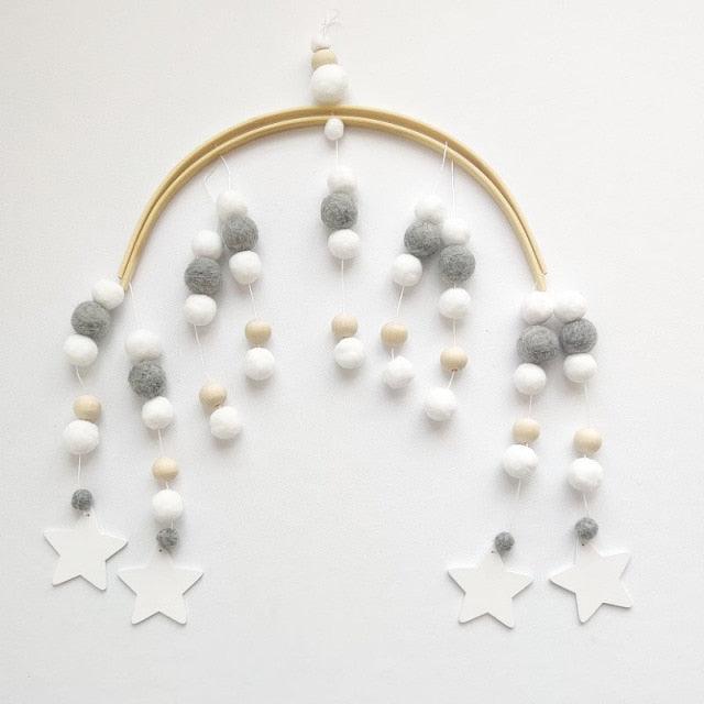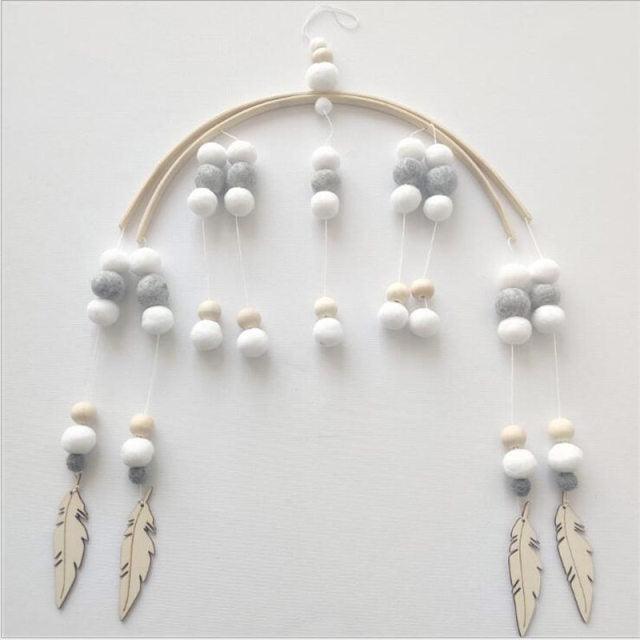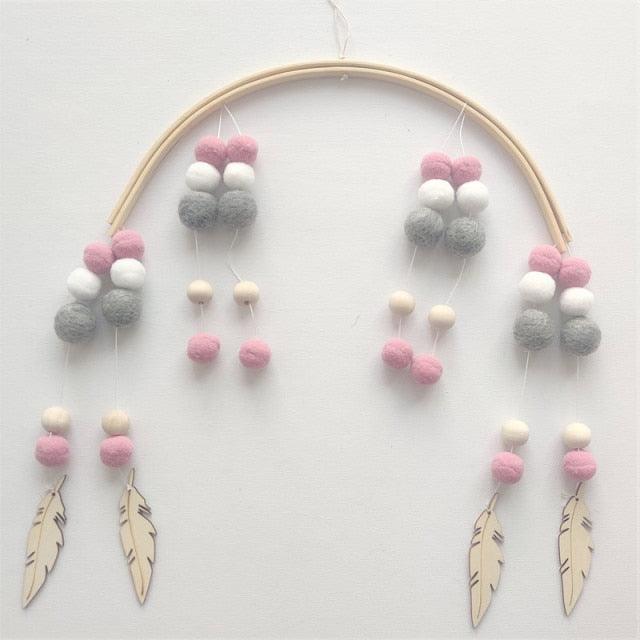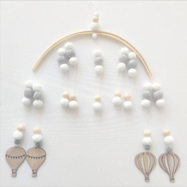 Wooden Beads Wind Chimes With Wool Balls Wooden Wind Chime Nursery Mobile Crib Bed Bell Baby Bedroom Ceiling Wooden Beads Hanging Ornament Pendant Newborn Baby Bed Hanging Wind bell Crib Tent Kids Room Decorations Ornaments