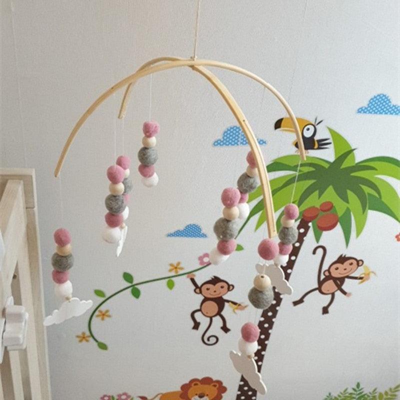 Wood Hanging for Crib Tent Ornament: Bed Bell Rattle Toys Newborn Girl Boy Gifts