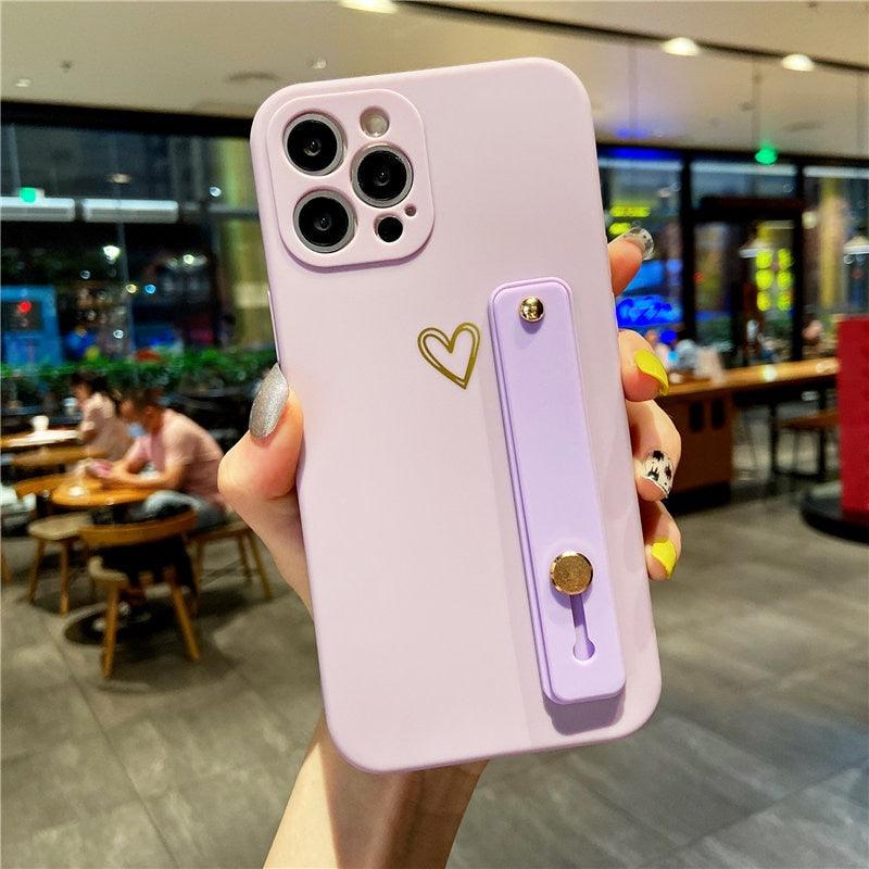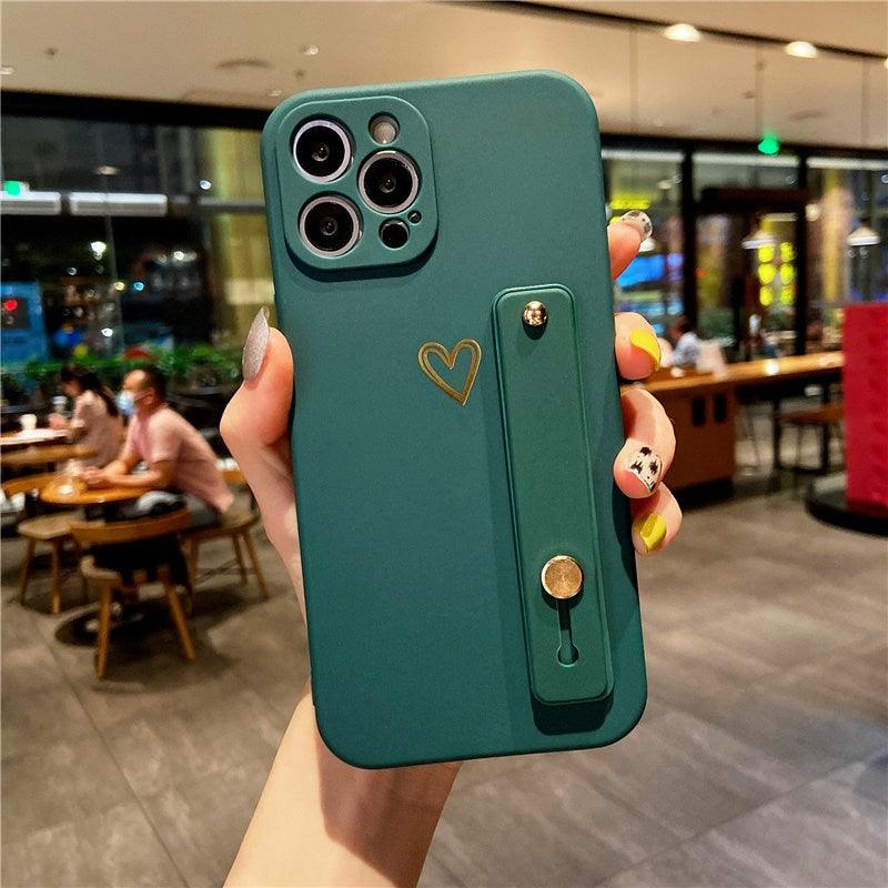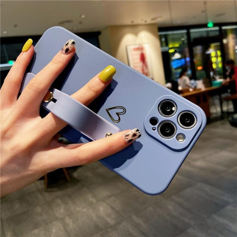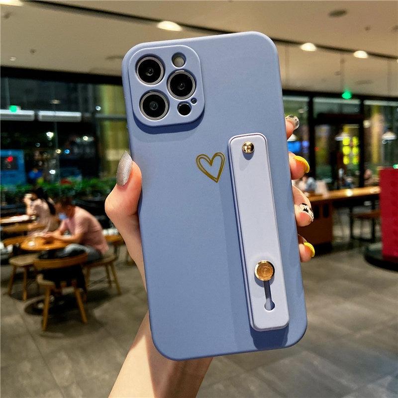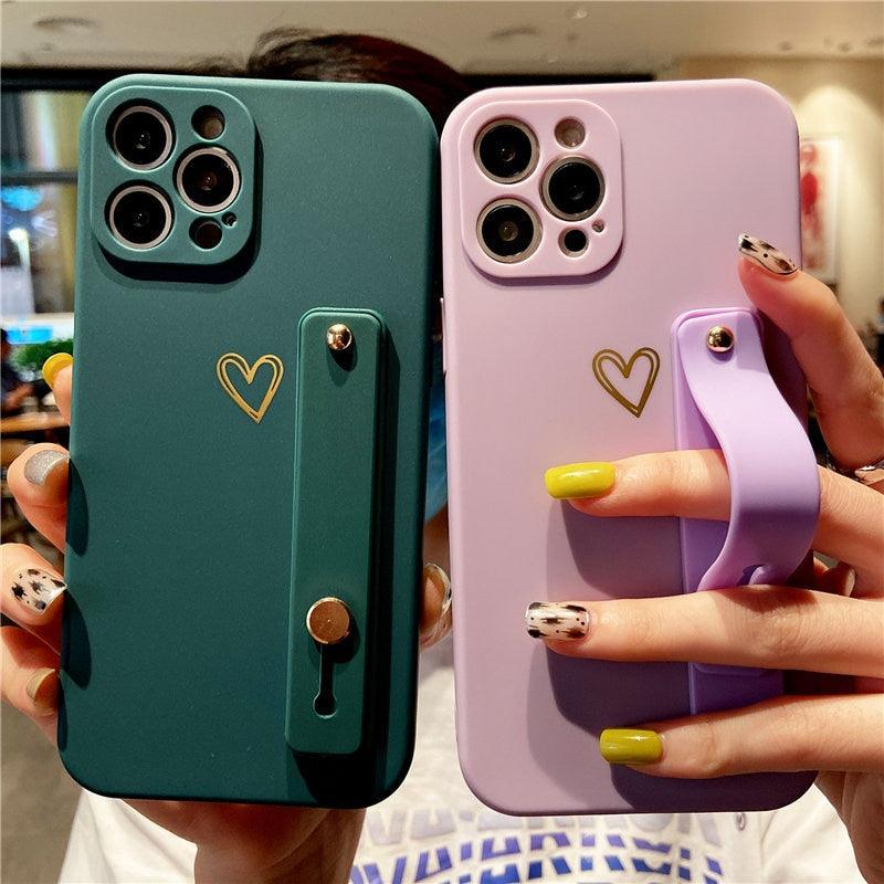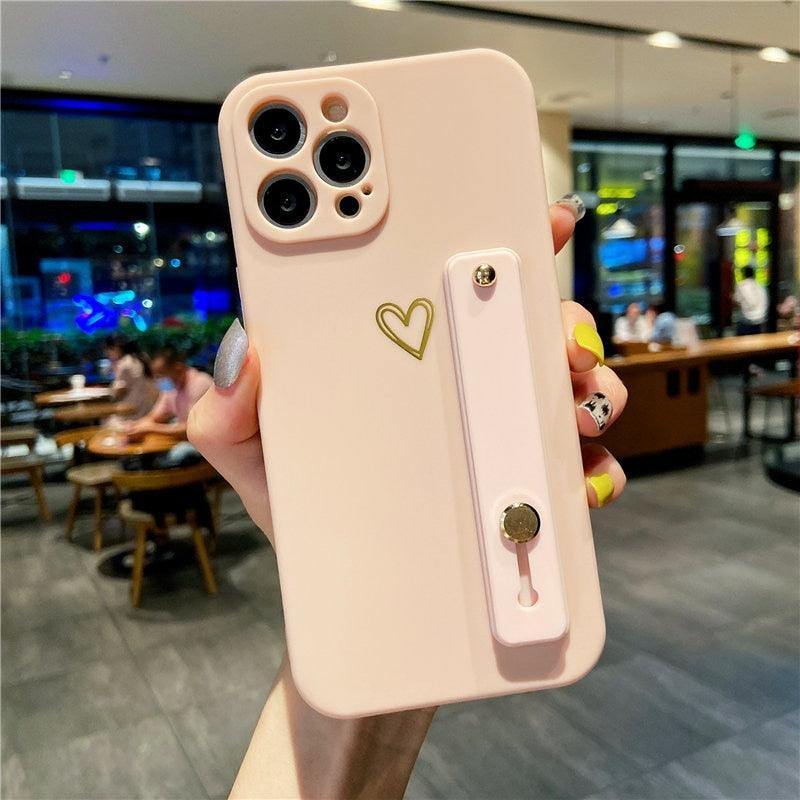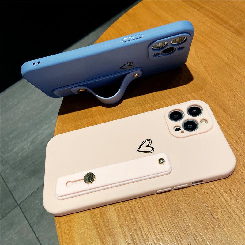 Adjustable Wrist Strap Phone Case For iPhone 13 Pro Max 12 11 Soft Silicone Cute Love Heart Back Cover Wrist Strap Holder Stand Shockproof Lightweight Protective Hard Back Cover for iPhone