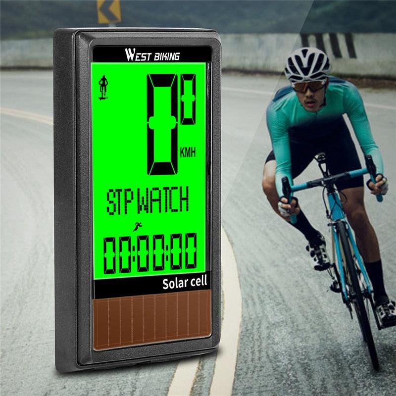 LED Waterproof Bicycle Computer Wireless 5 Language Cycling Bike Odometer Stopwatch Speedometer With Solar Energy Bicycle Odometer Wireless Waterproof Cycling Computer LCD Backlight Display