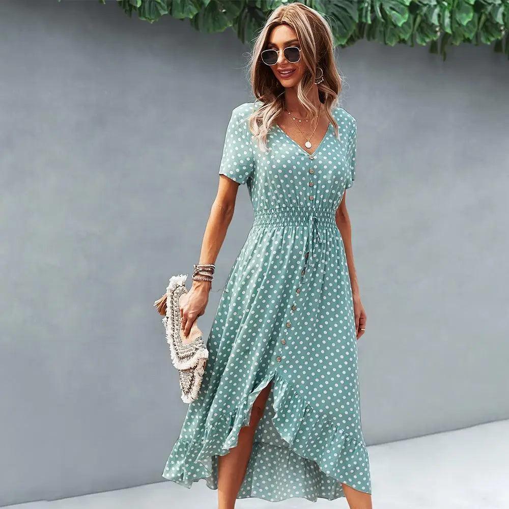 2021 Fashion Elegant Boho Short Sleeve Polka Dot Long Dresses Women Beach Party Vintage Fashion Dresses - ALLURELATION - 578, Best choice for the gift, best quality dress, Best selling dresses, chic french style dress, contemporary dress style, Cute Dresses, Dresses, fancy gift, Fashion Dresses, gift for birthday, gift for the anniversary, luxury dress, luxury polka print dress, soft fabric dress, Stylish dress, Stylish Dresses - Stevvex.com